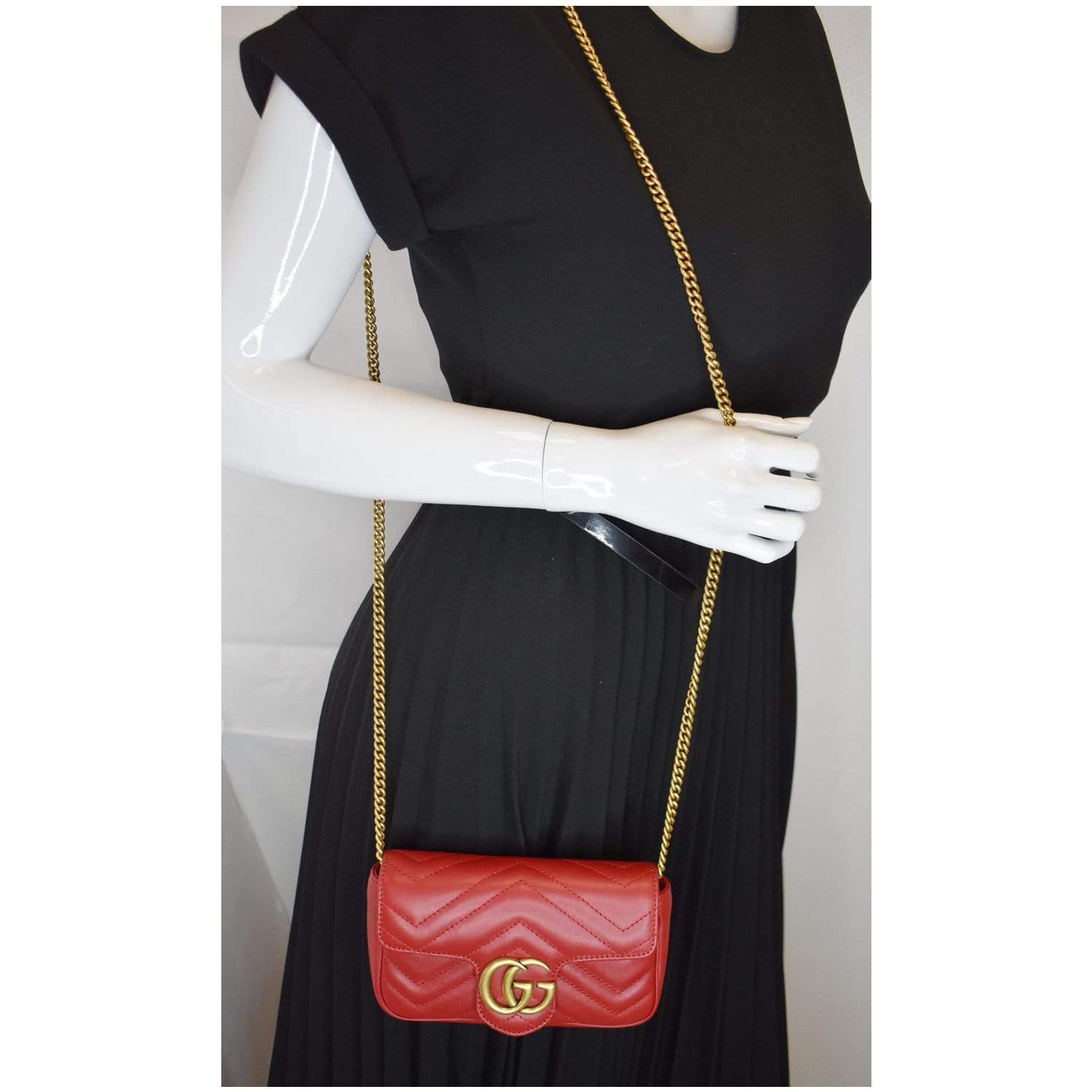 GUCCI GG Marmont Matelasse Leather Super Mini Crossbody Bag Red - 25% OFF