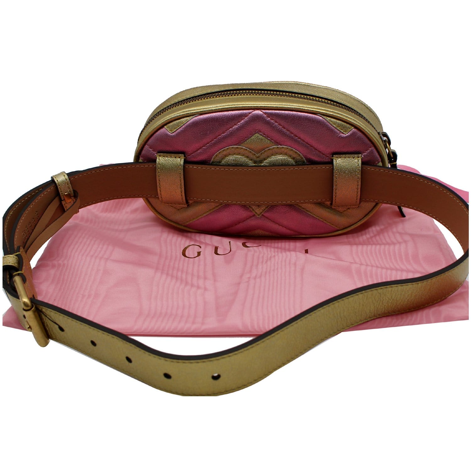 GUCCI GG Marmont Matelasse Metallic Calfskin Leather Belt Bag Gold Pink 476434 - 10% OFF