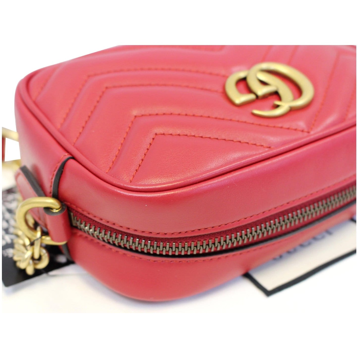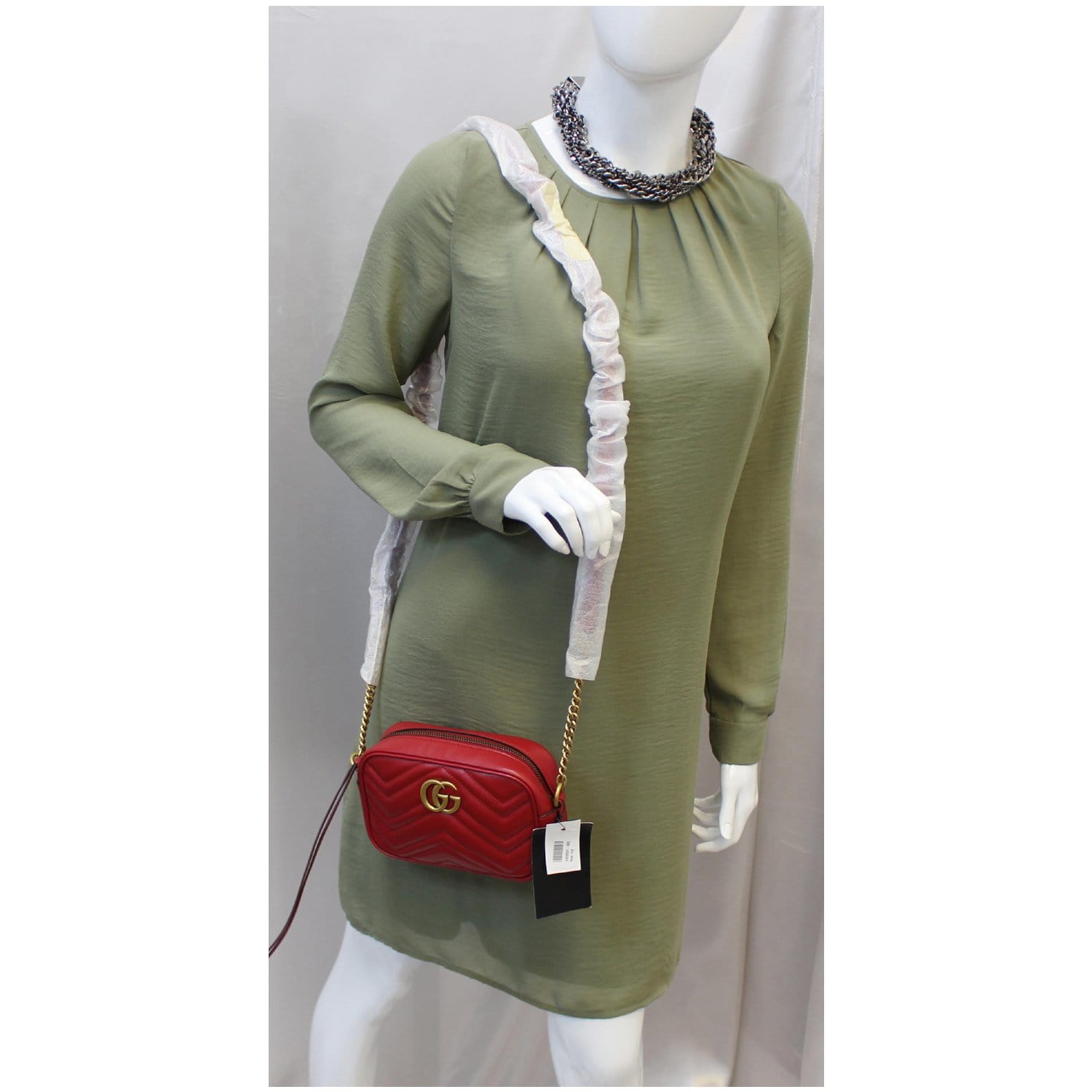 GUCCI GG Marmont Matelasse Mini Leather Crossbody Bag Red