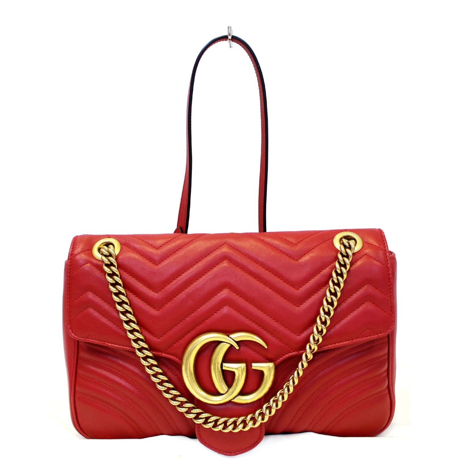GUCCI GG Marmont Matelasse Red Leather Shoulder Bag