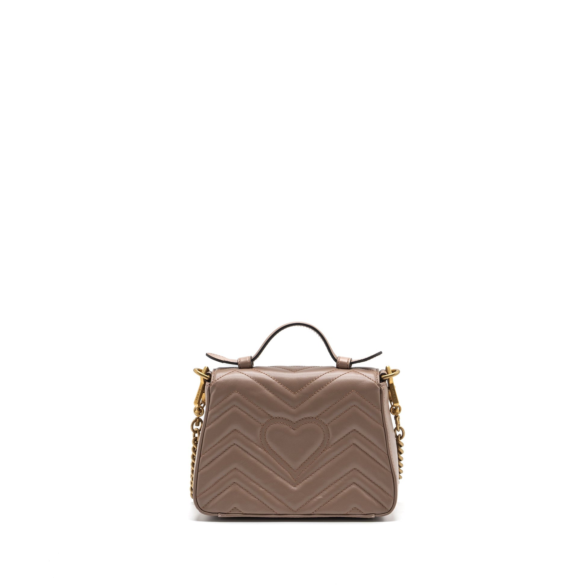 Gucci GG Marmont Mini Top Handle Bag Leather Dark Beige