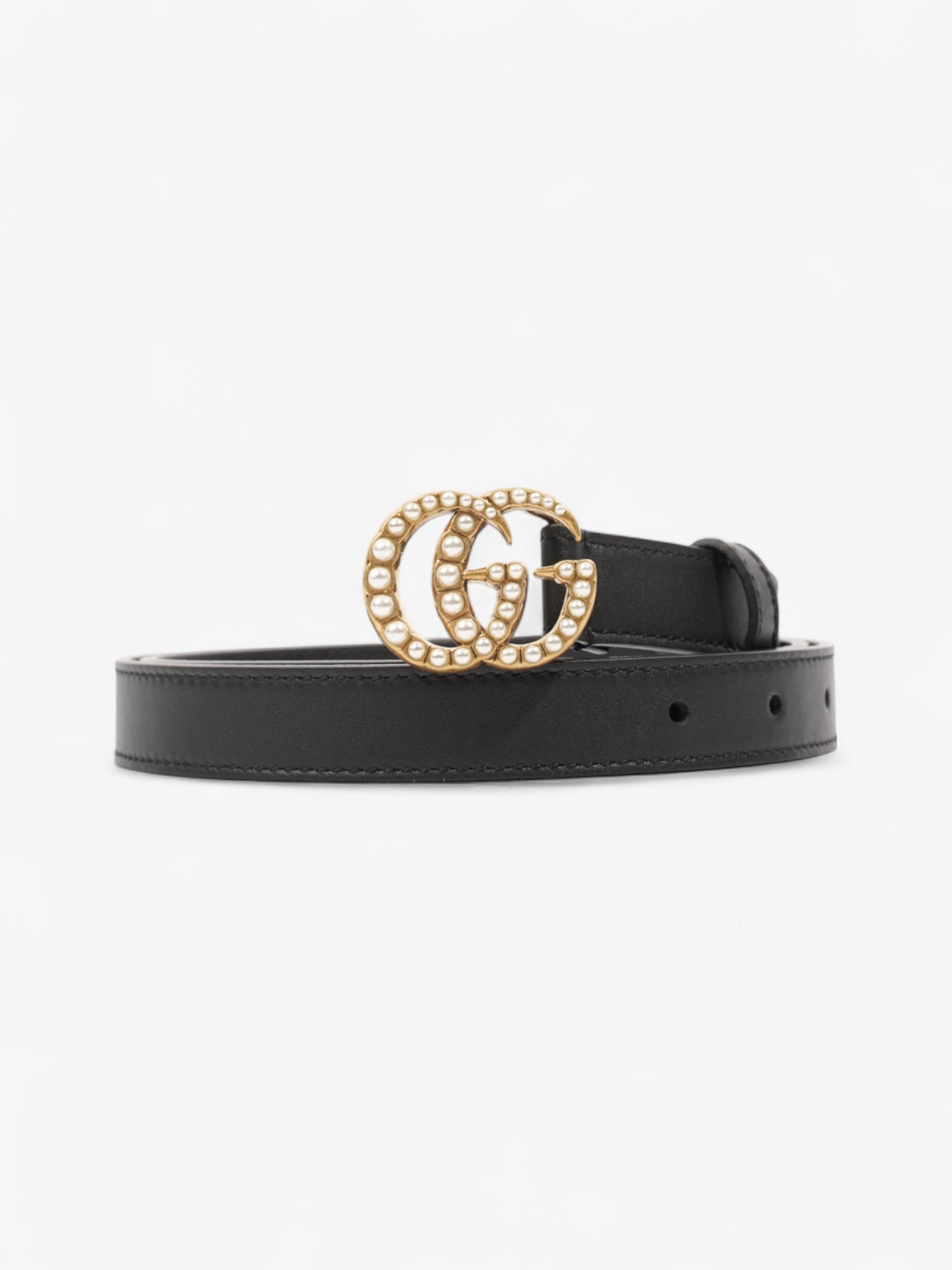 Gucci GG Marmont Thin Pearl Belt Black / Gold / Pearl Leather 90cm / 36"