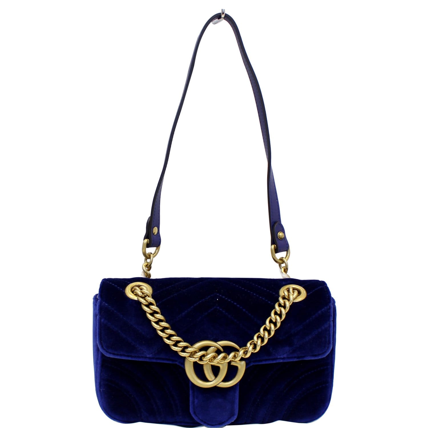 GUCCI GG Marmont Velvet Mini Shoulder Crossbody Bag Blue