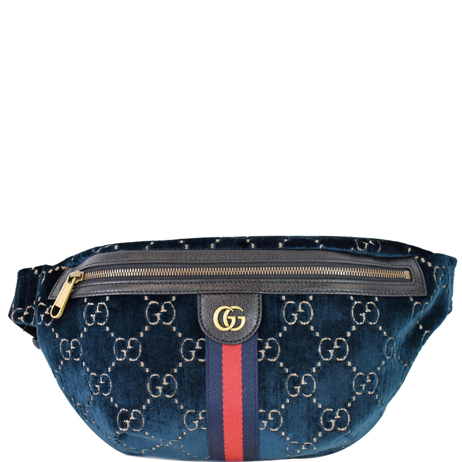 GUCCI GG Monogram Velvet Belt Bumbag Dark Blue 574968