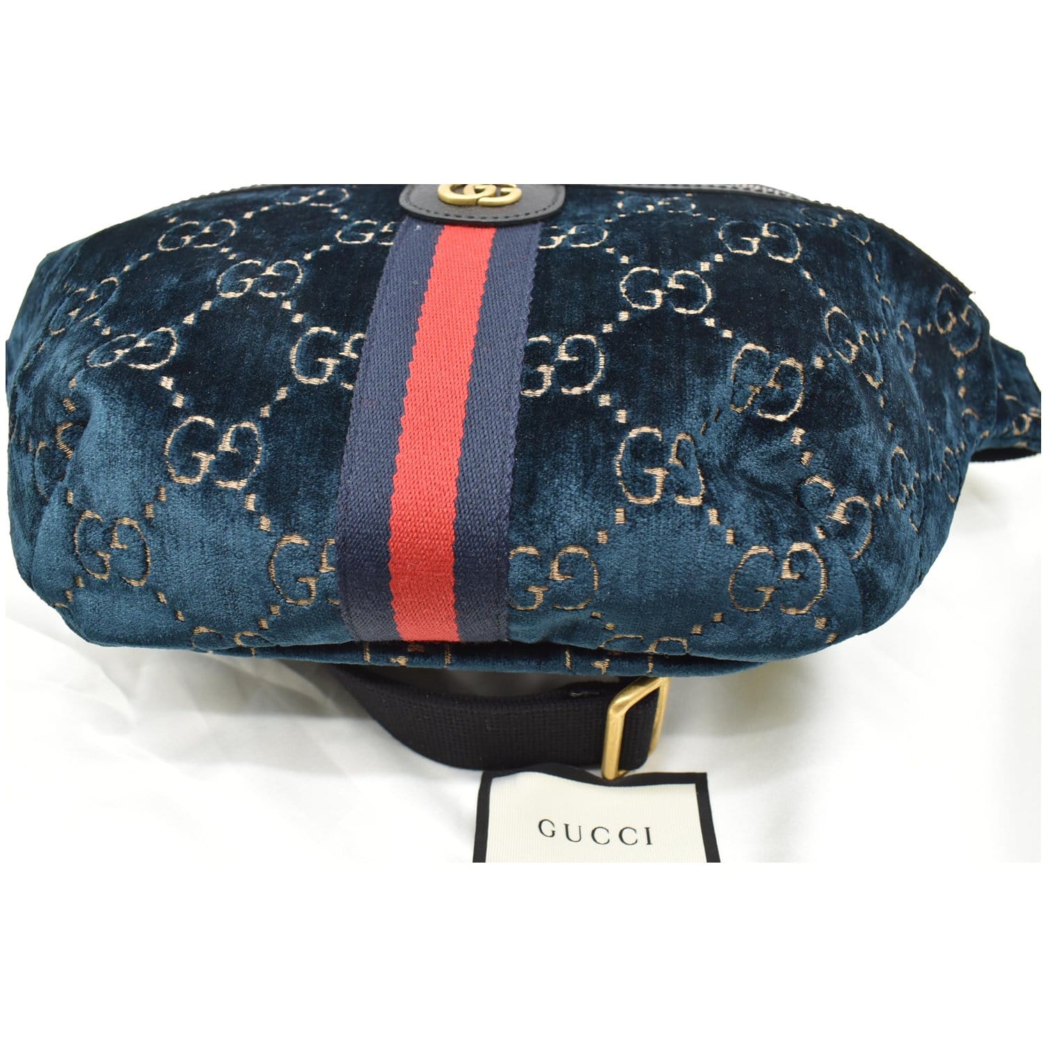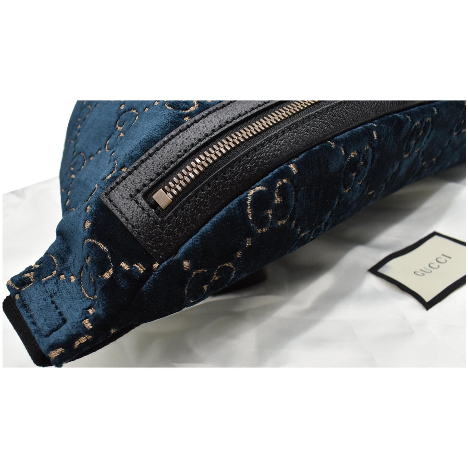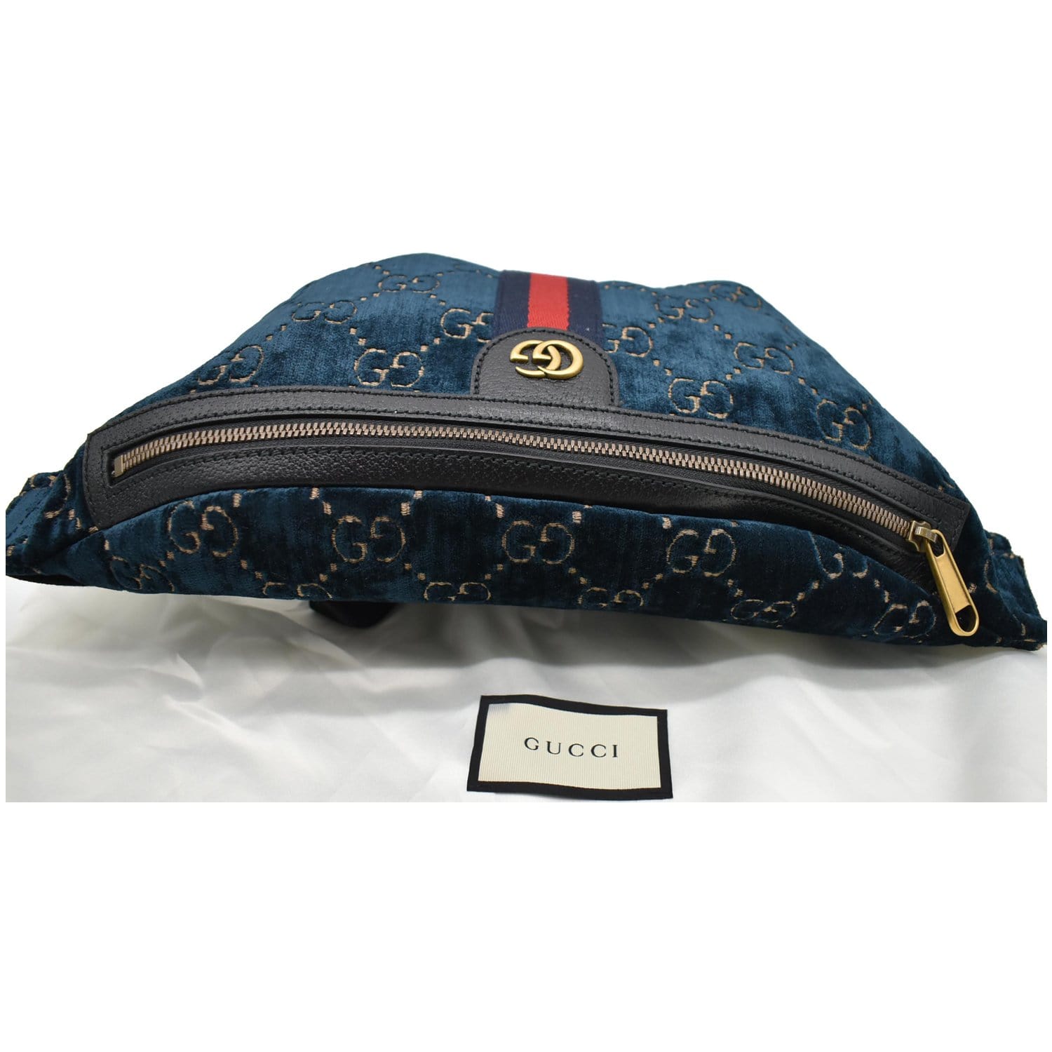 GUCCI GG Monogram Velvet Belt Bumbag Dark Blue 574968