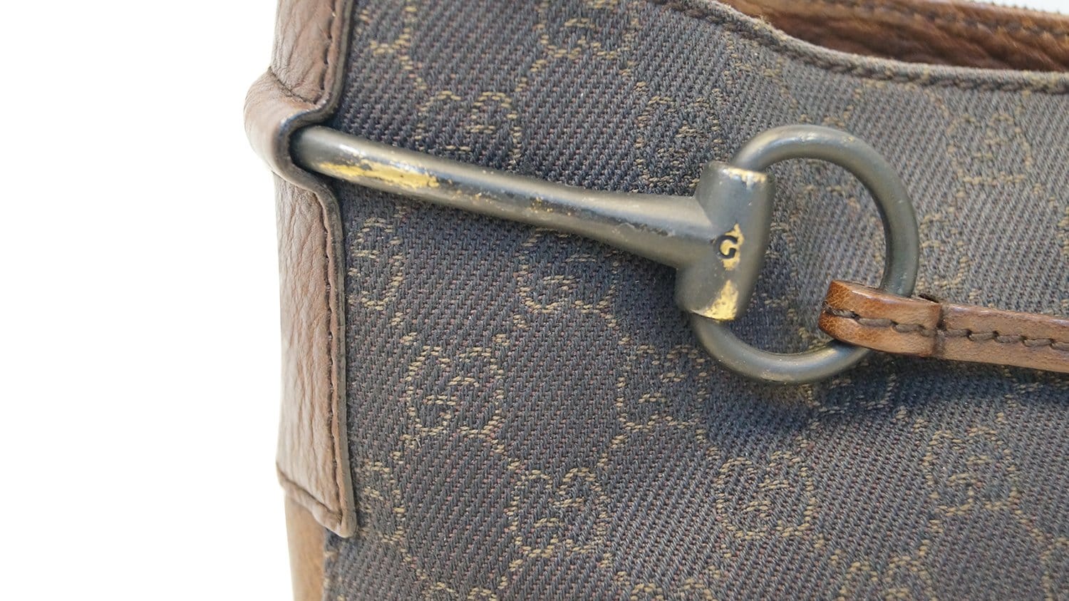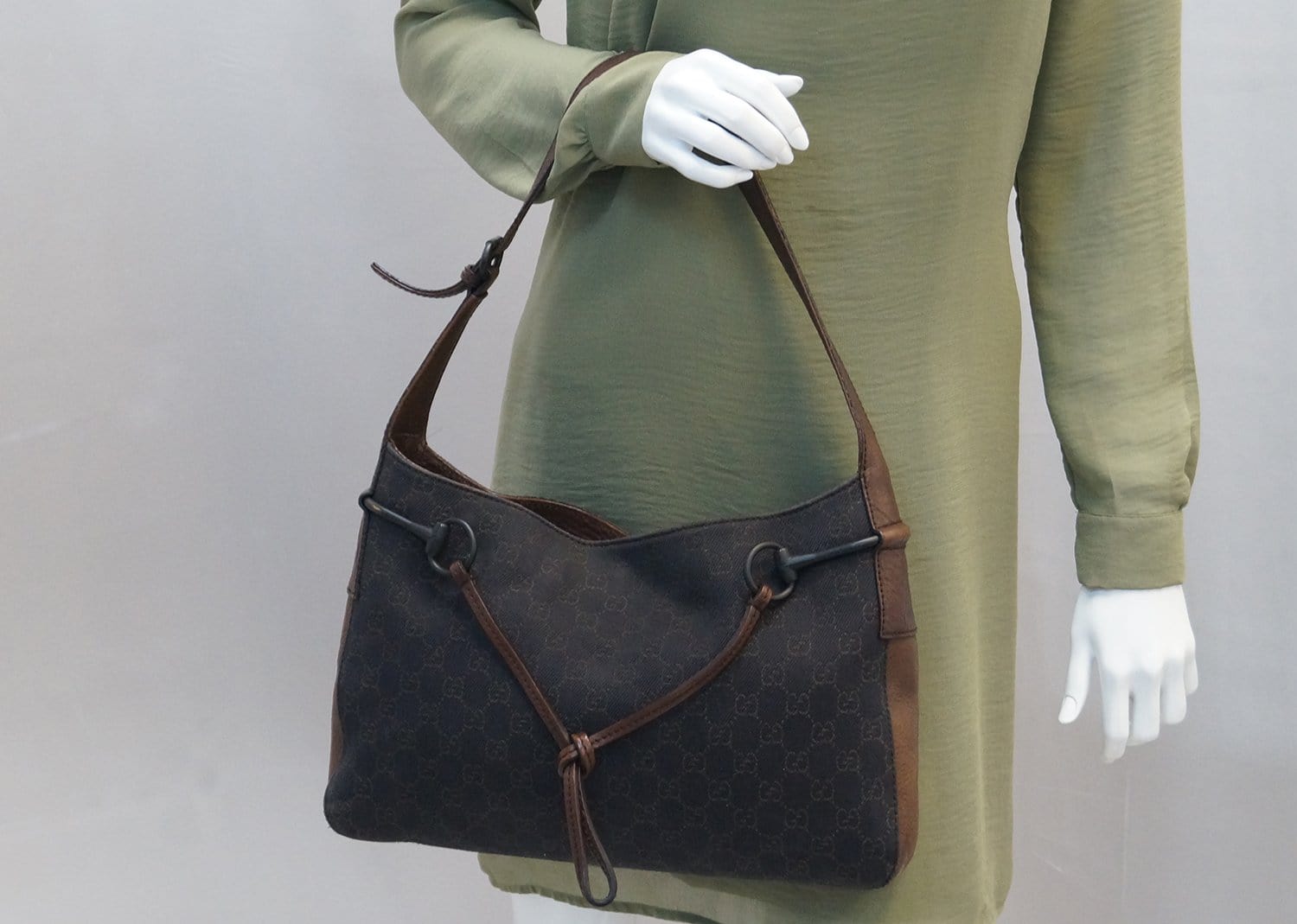 GUCCI GG Pattern Horsebit Dark Brown Shoulder Bag