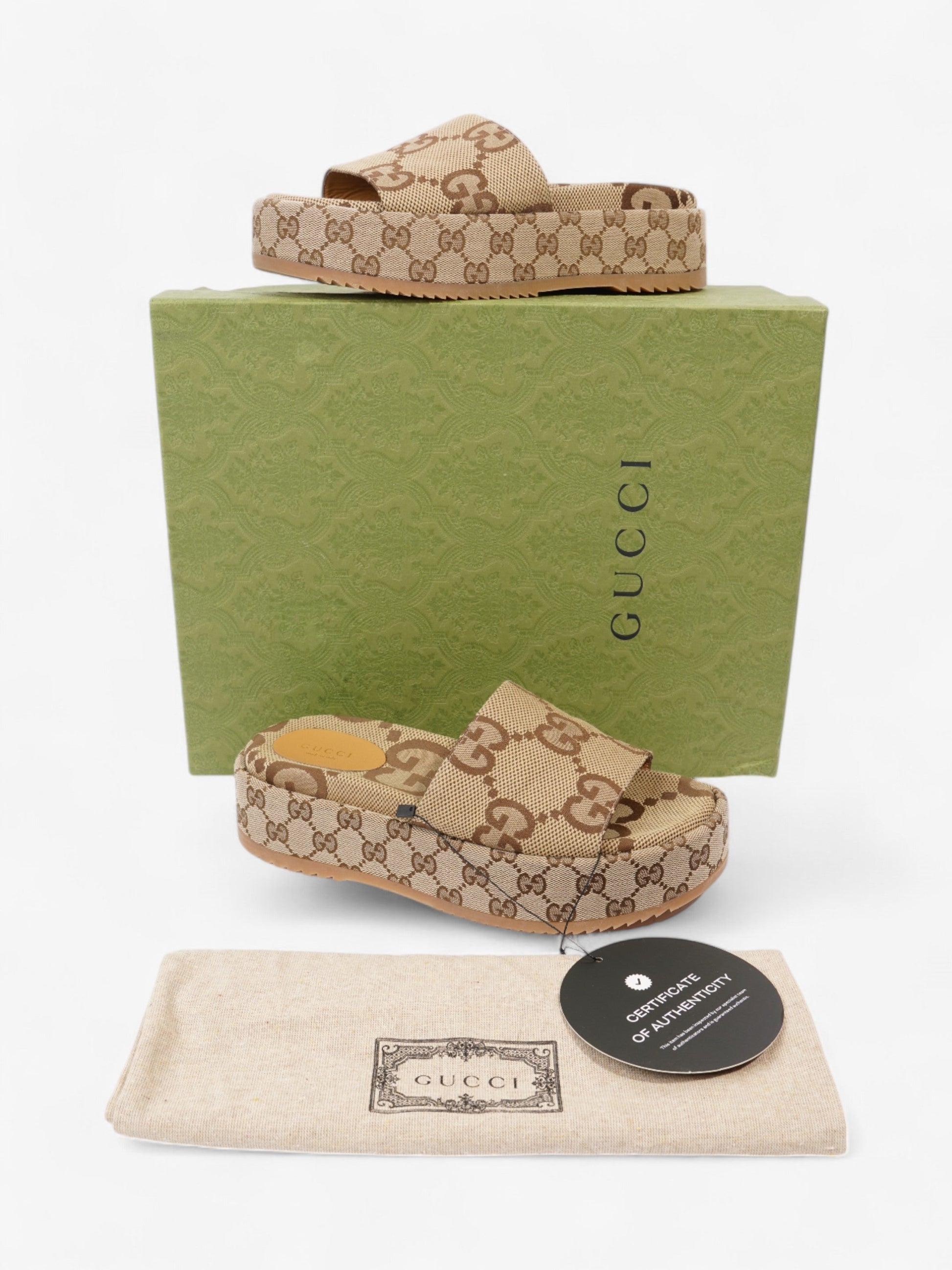 Gucci GG Platform Sandals Beige / Brown Canvas EU 39 UK 6