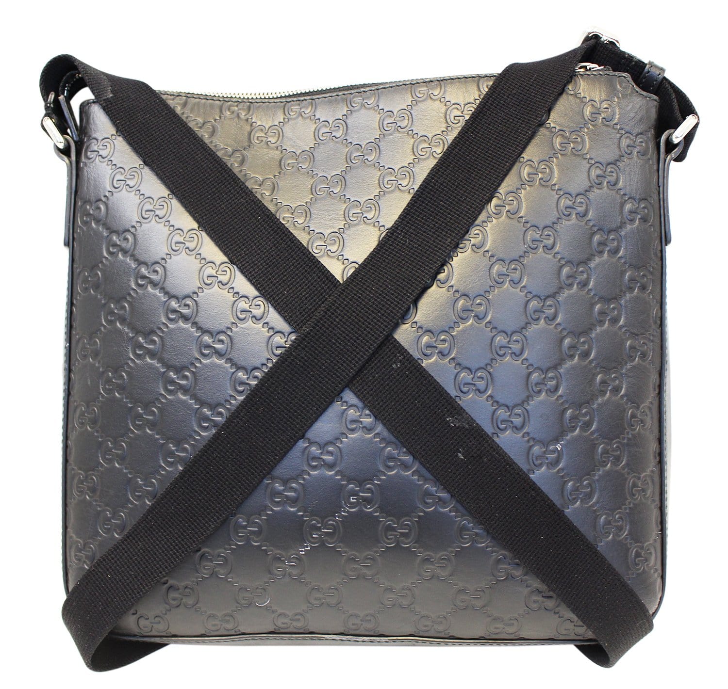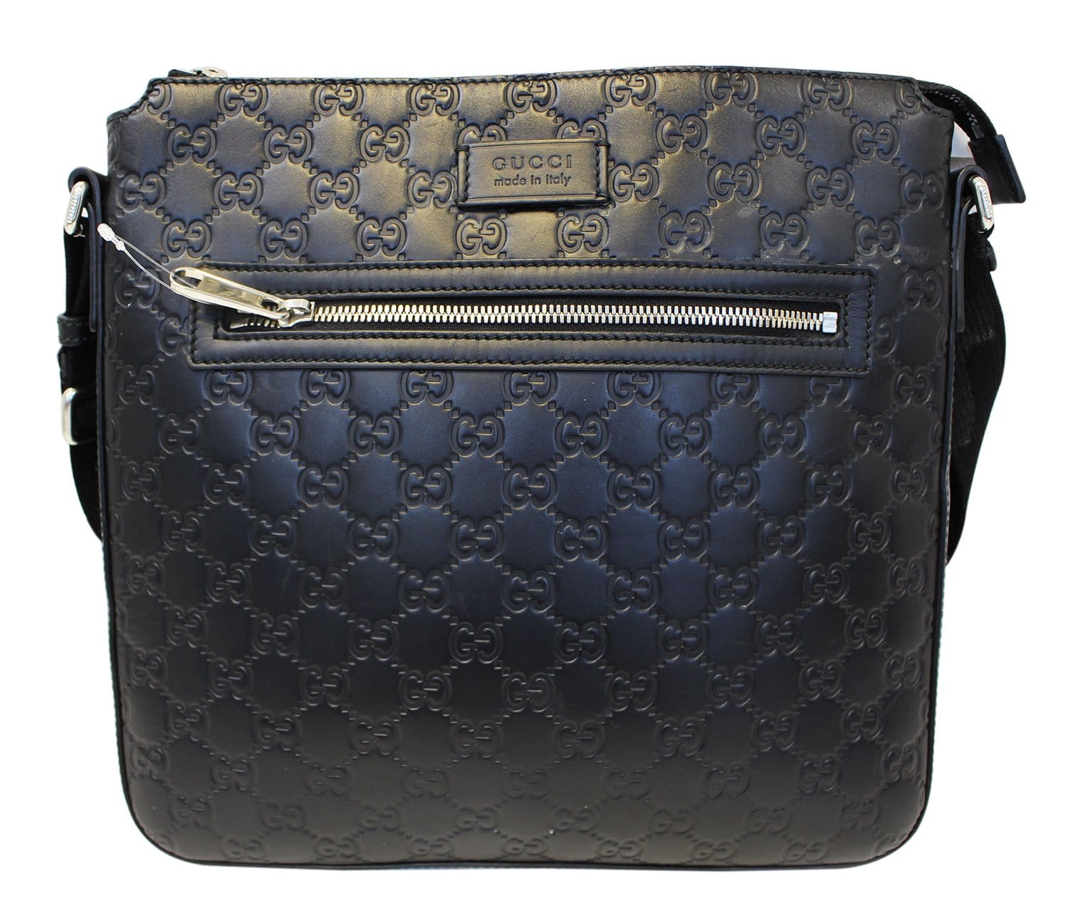Gucci GG Signature Leather Black Messenger Bag 406408