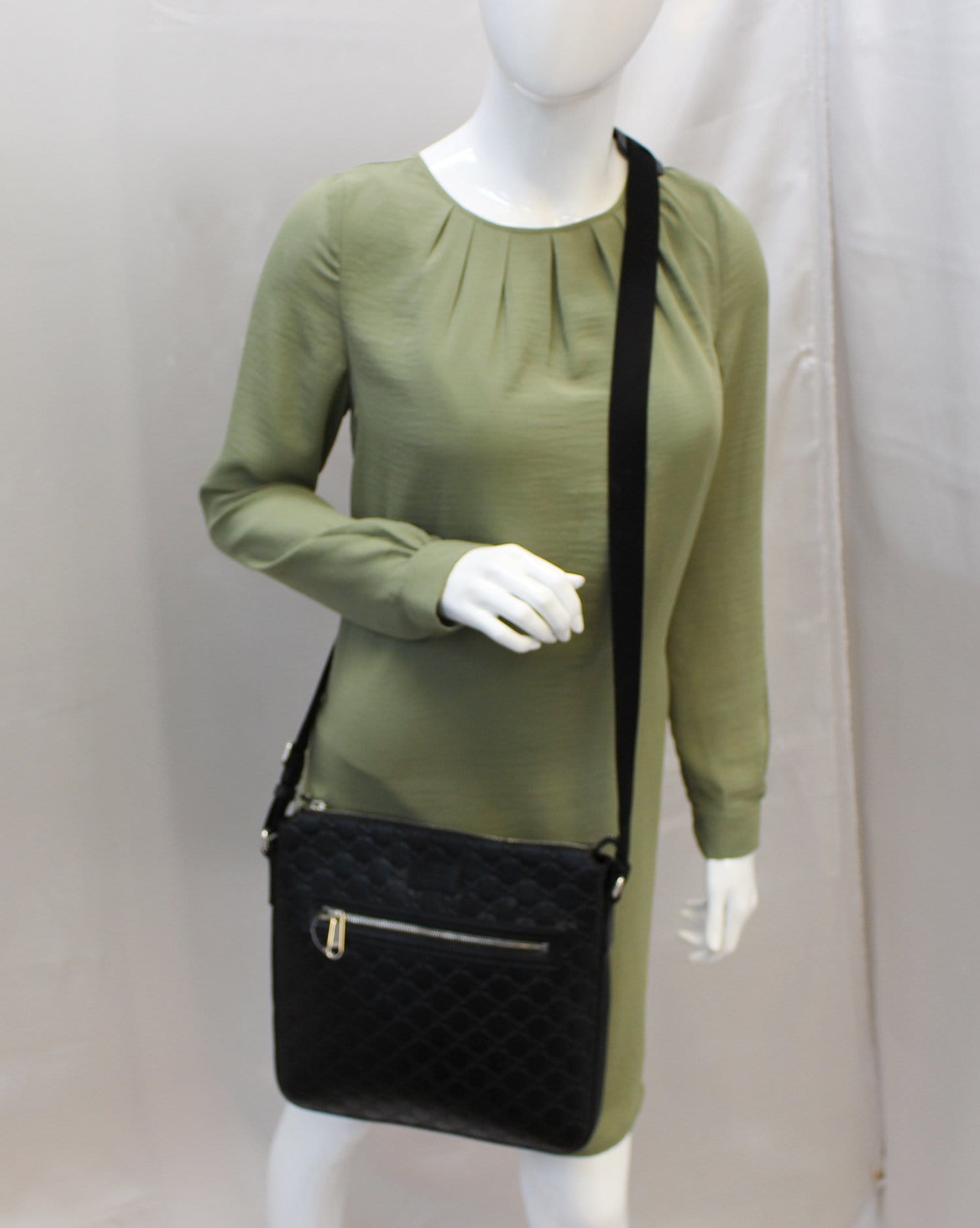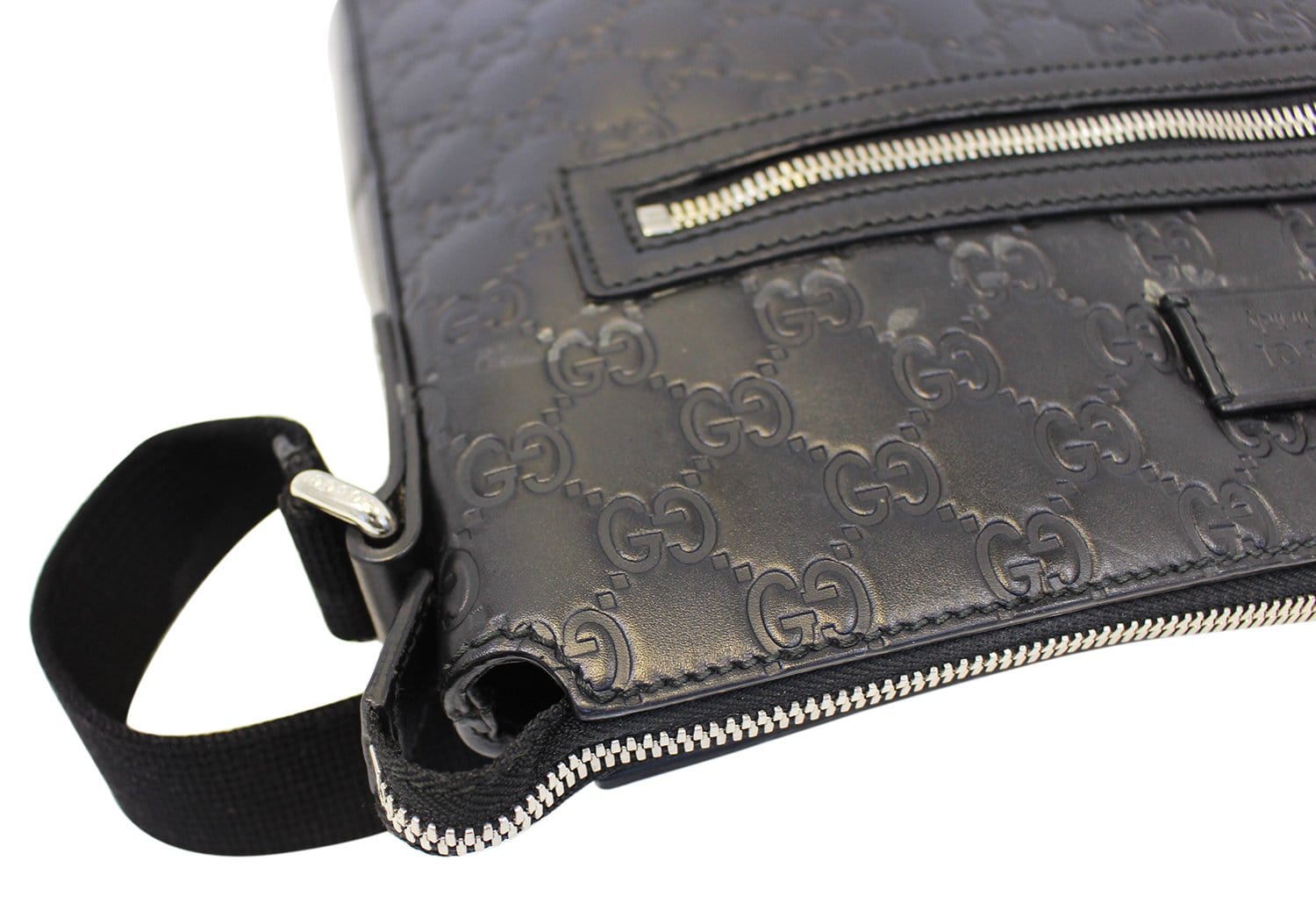 Gucci GG Signature Leather Black Messenger Bag 406408�