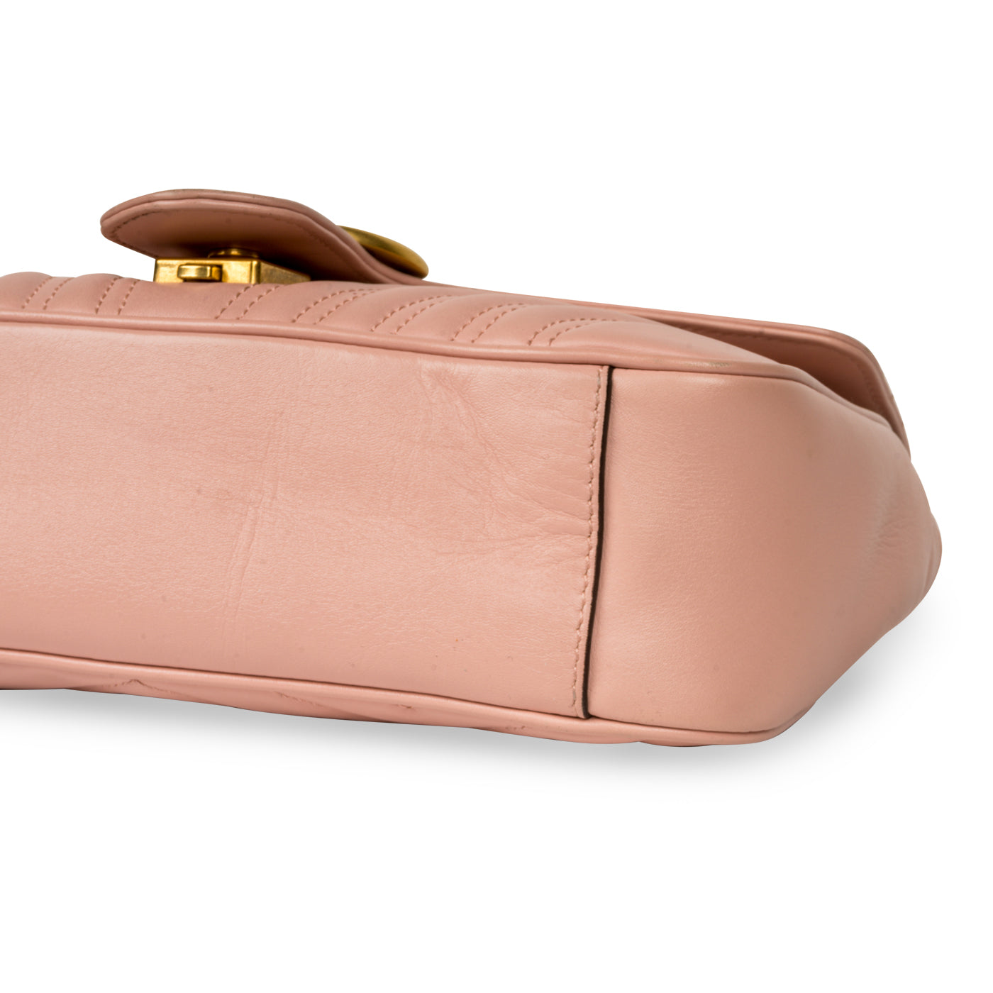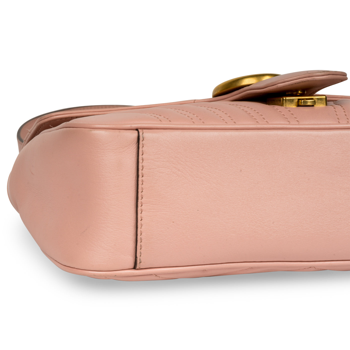 Gucci presents its highly-acclaimed GG Marmont bag in basically the prettiest shade of pink you've ever seen. Yes, we are obsessed with this gem of a bag here at Bagista, as well. One of the most popular and in-demand bags of the past 5 years, if you have an Instagram account (let alone a remote interest in fashion) then you've definitely seen this bag before. Pretty in pink, this Marmont is crafted from chevron leather and features a prominent GG logo clasp and chain strap in antique gold-tone hardware. Chic and elegant, this Marmont embodies femininity to a T but is also suitable for the young, modern woman with a bit of an edgy style and a love for luxury. A well-worthy addition to any handbag collection, you just simply need the Marmont in your life - point blank.�