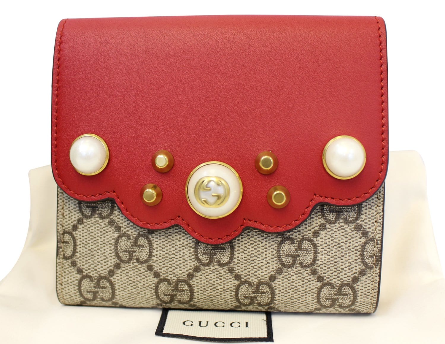 GUCCI GG Supreme French Flap Wallet Pearl Studded 431480