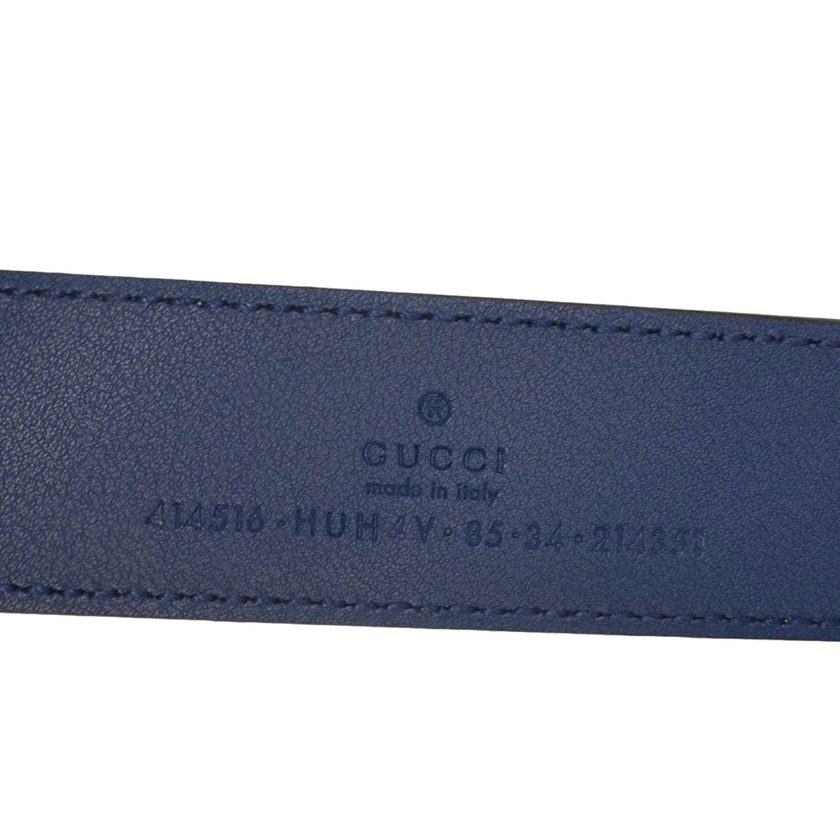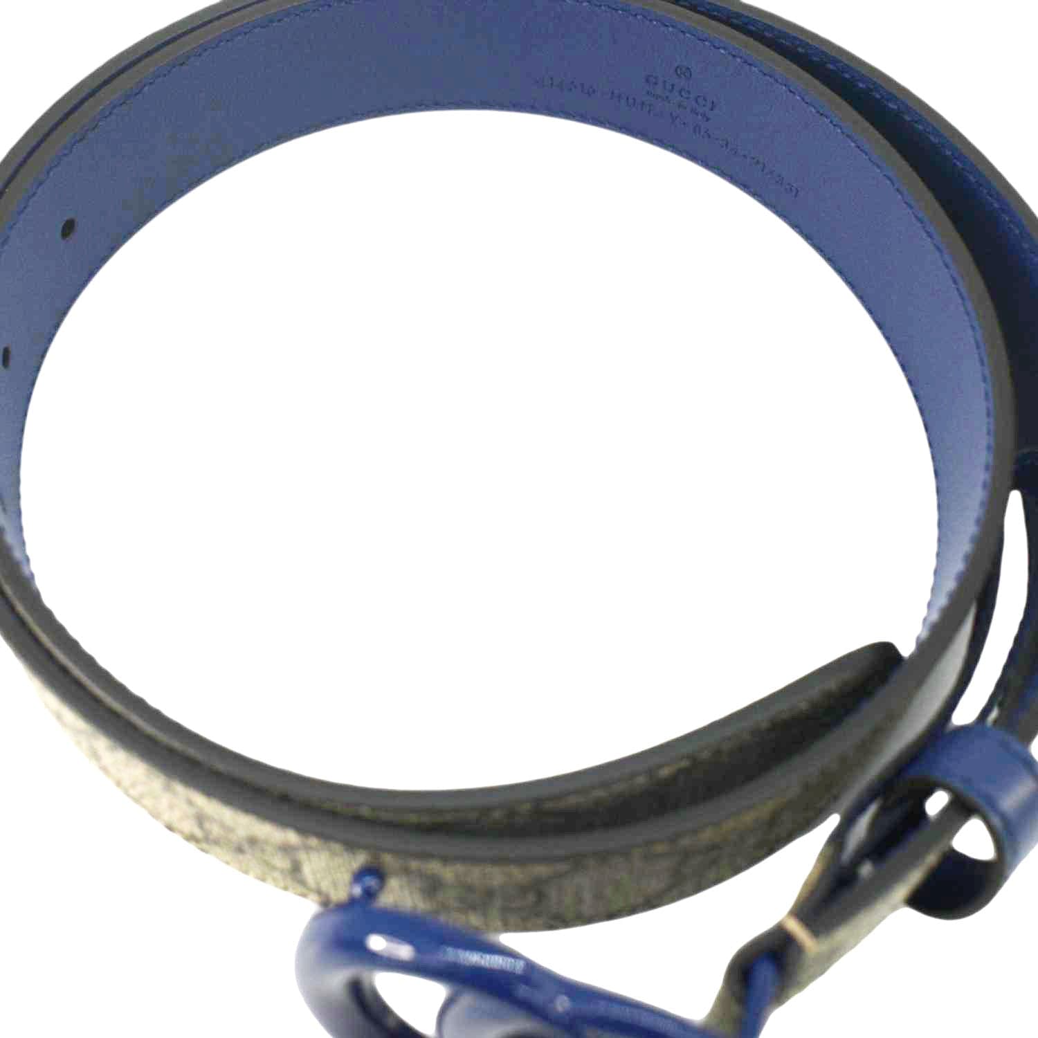 GUCCI GG Buckle Supreme Canvas Leather Belt Size 85.34 Blue 414516