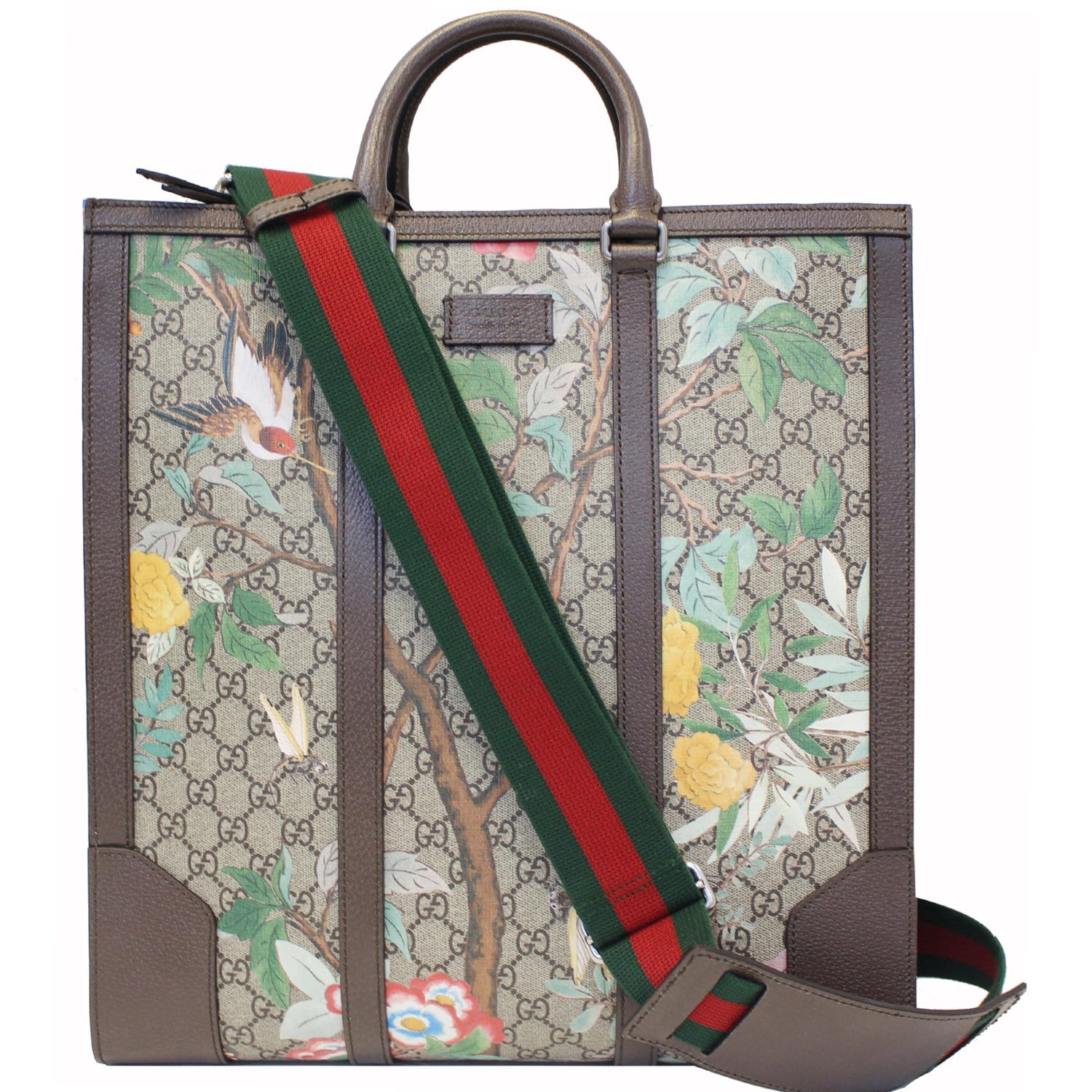 GUCCI GG Supreme Monogram Tian Print Tote Shoulder Bag Maple Brown 406387