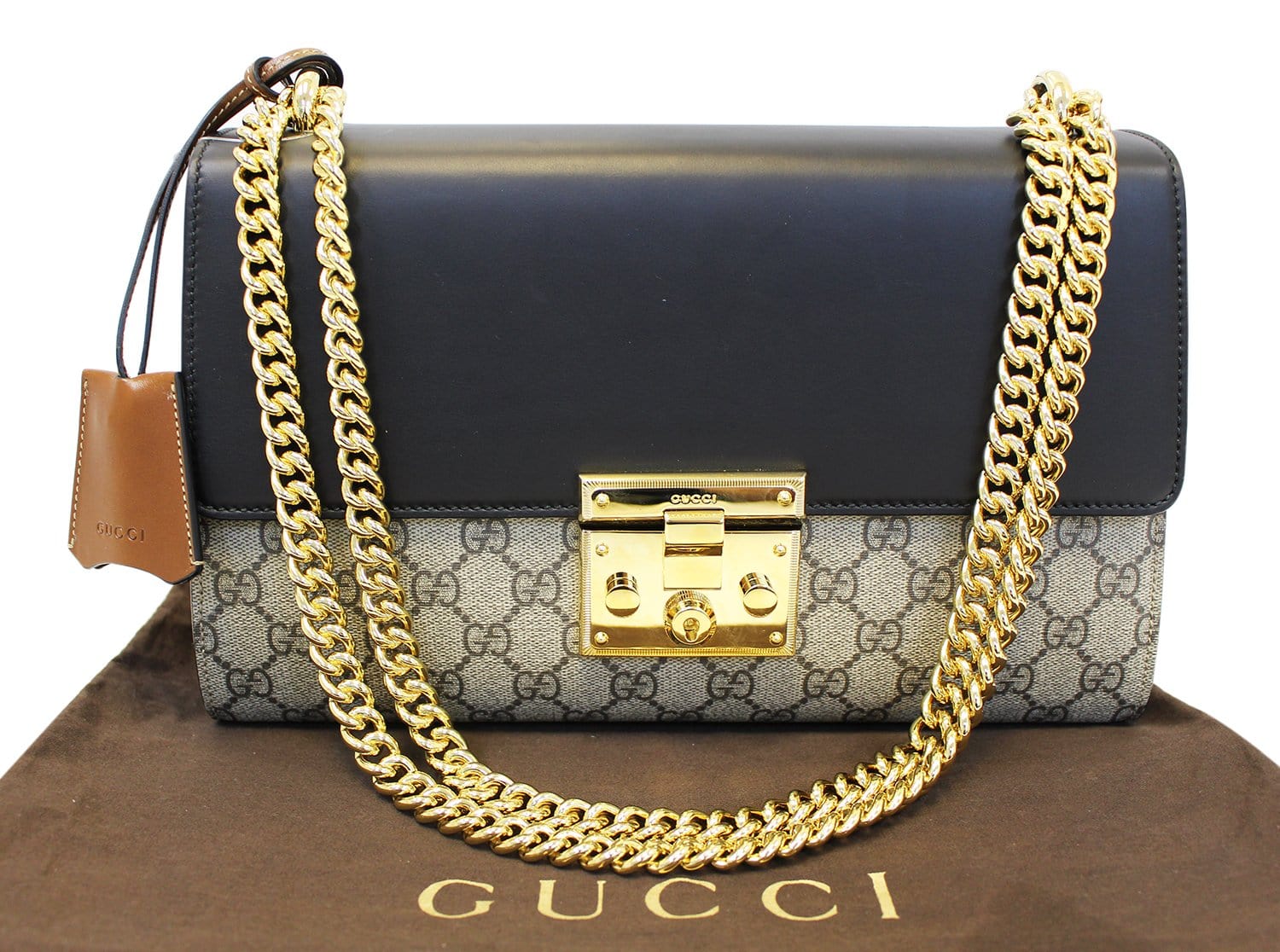GUCCI GG Supreme Beige/Black Padlock Medium Shoulder Bag