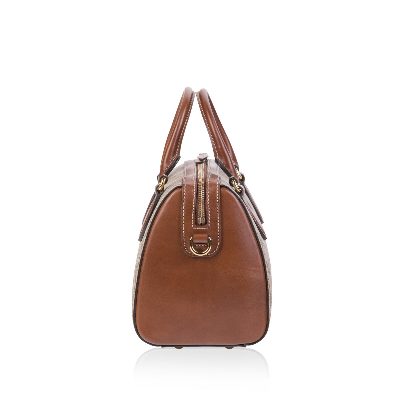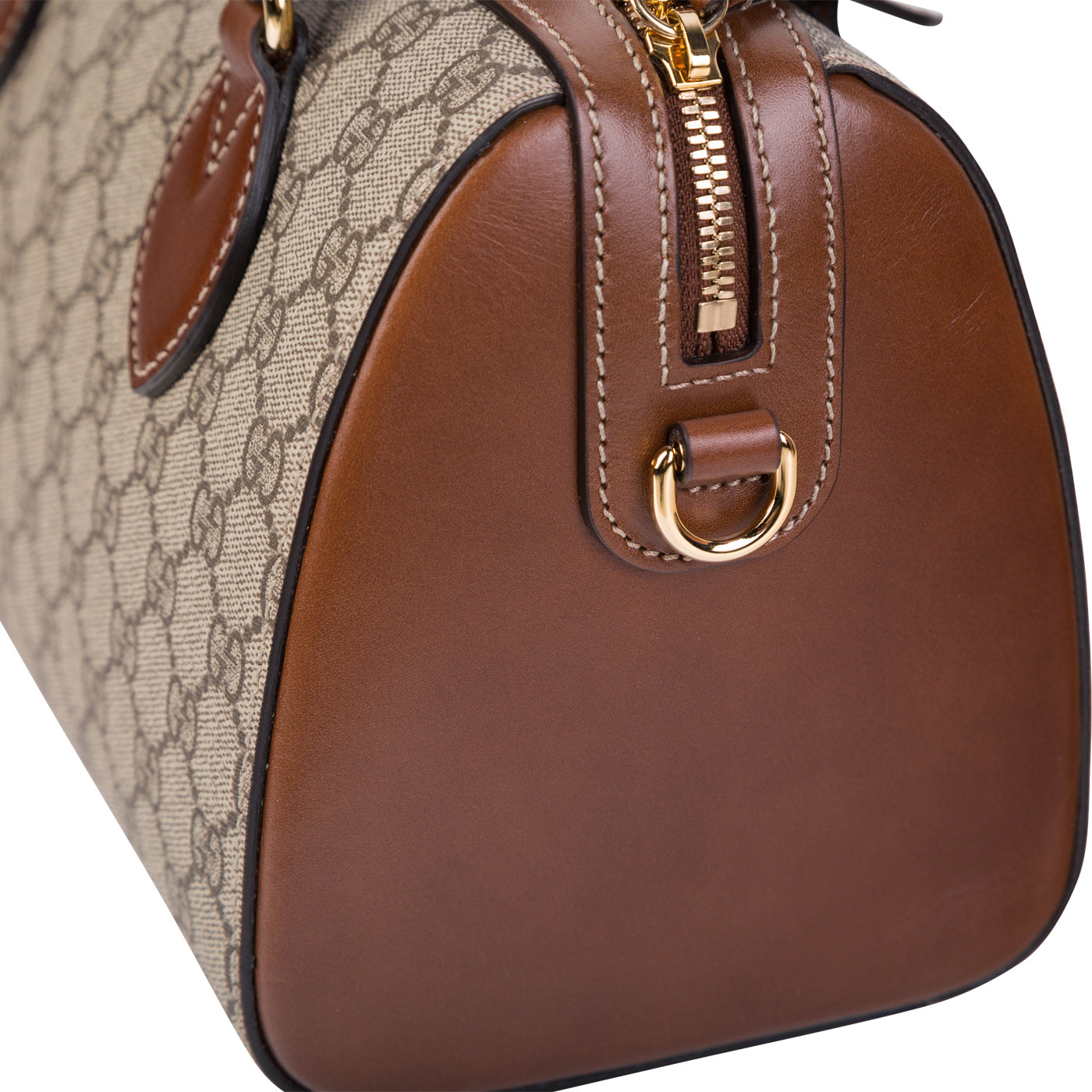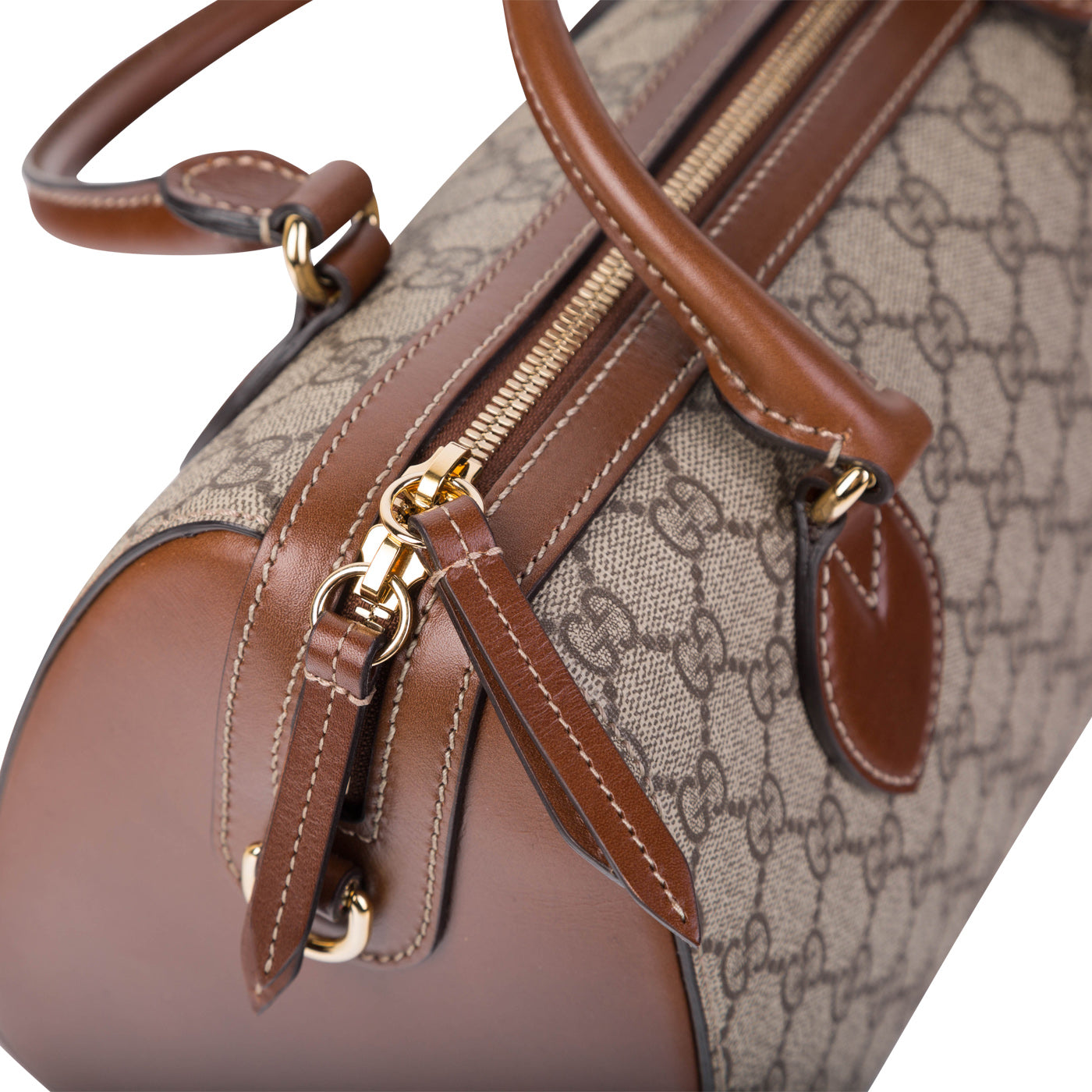 Calling all Gucci lovers! The GG Supreme Top Handle bag is an absolute must-have for any woman who holds a special spot in her heart for Gucci. With its signature GG monogram canvas, brown leather sides / handles, and ideal size, this bag is the perfect all-rounder for day-to-day use while exuding a modern, fashionable elegance. Throw all your every day essentials inside the spacious interior, which features two mobile phone compartments and one zip pocket, and be on your way in style.