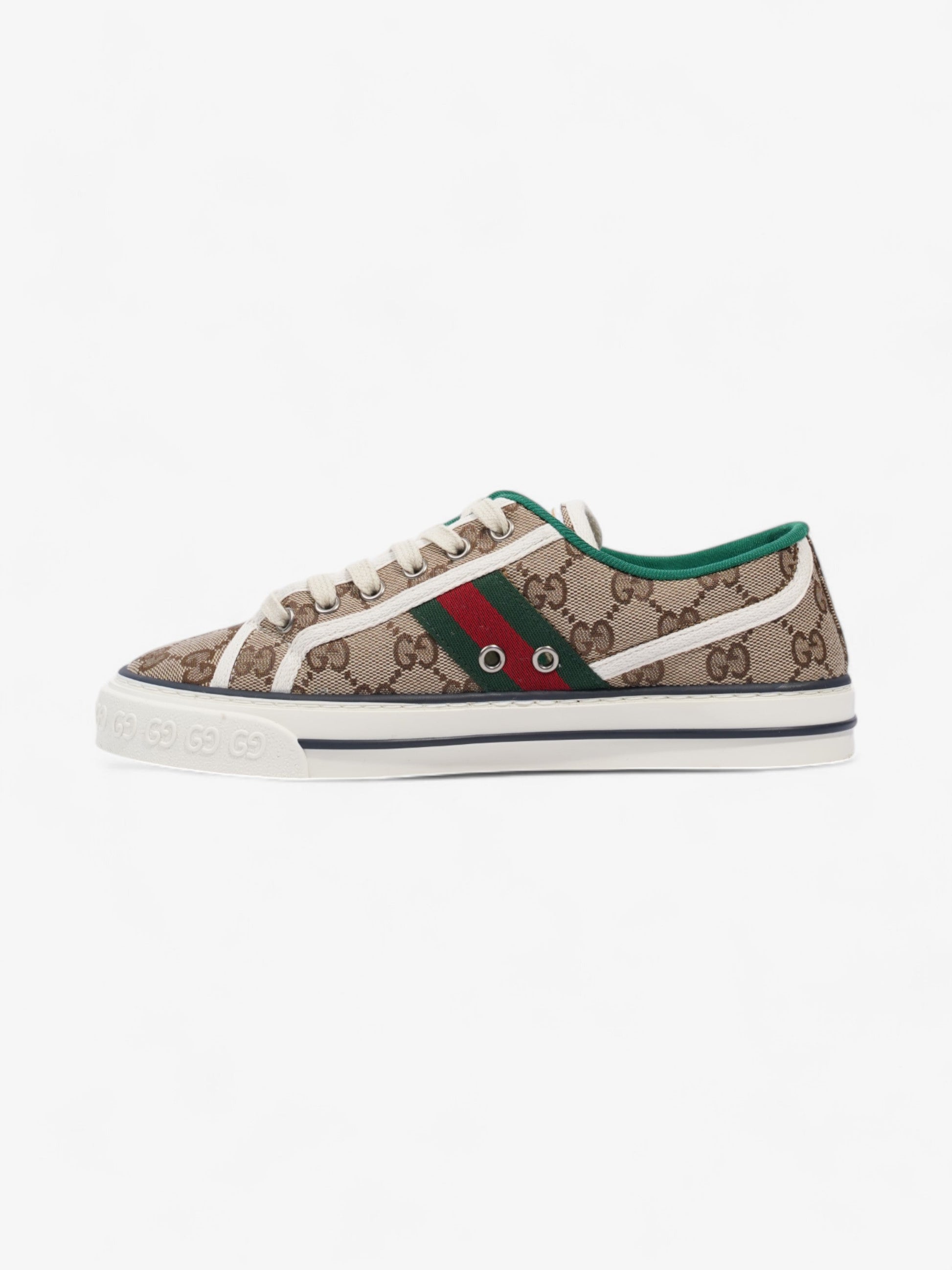 Gucci GG Tennis 1977 Sneakers Beige / White / Green Canvas EU 38 UK 5