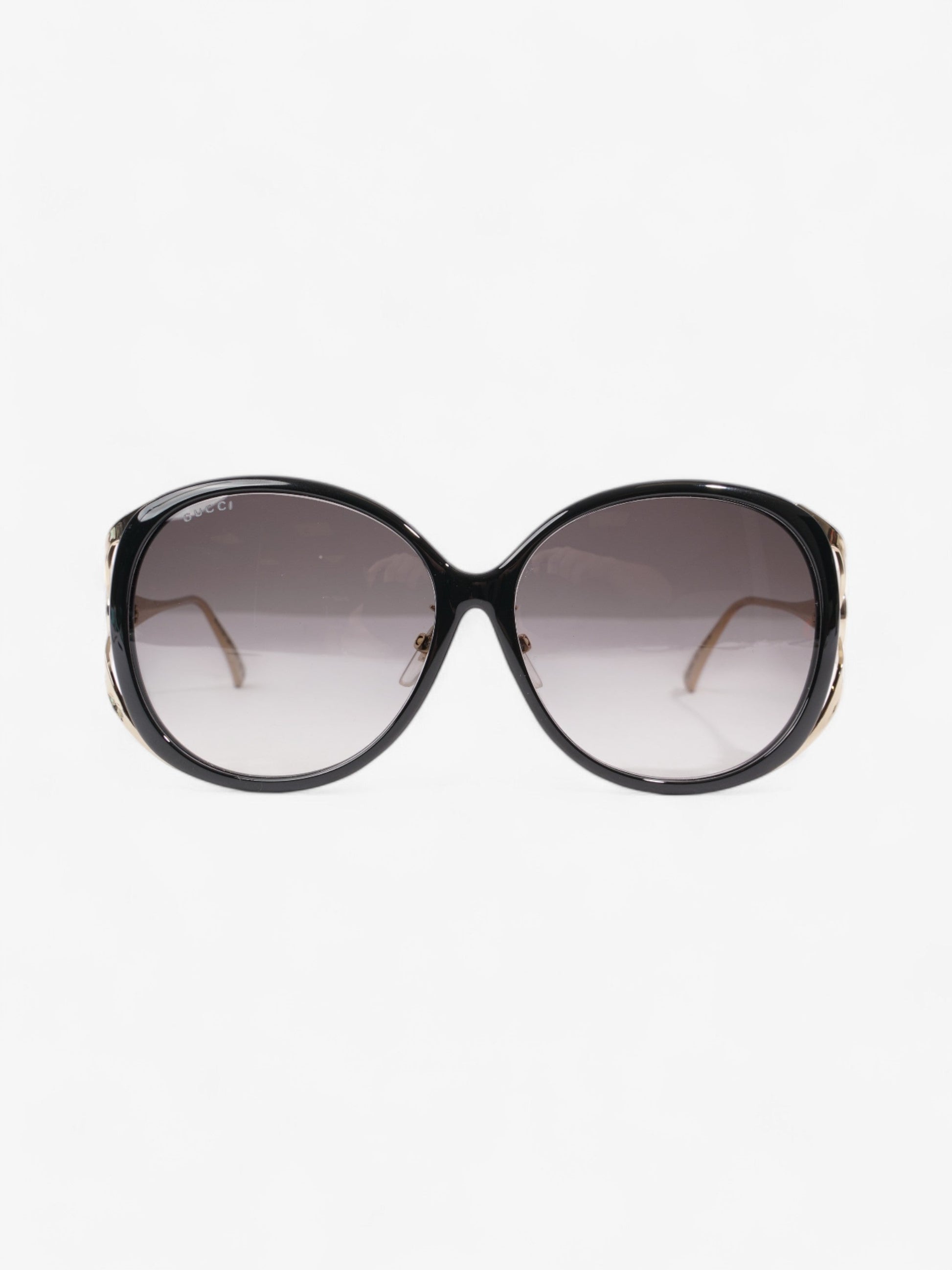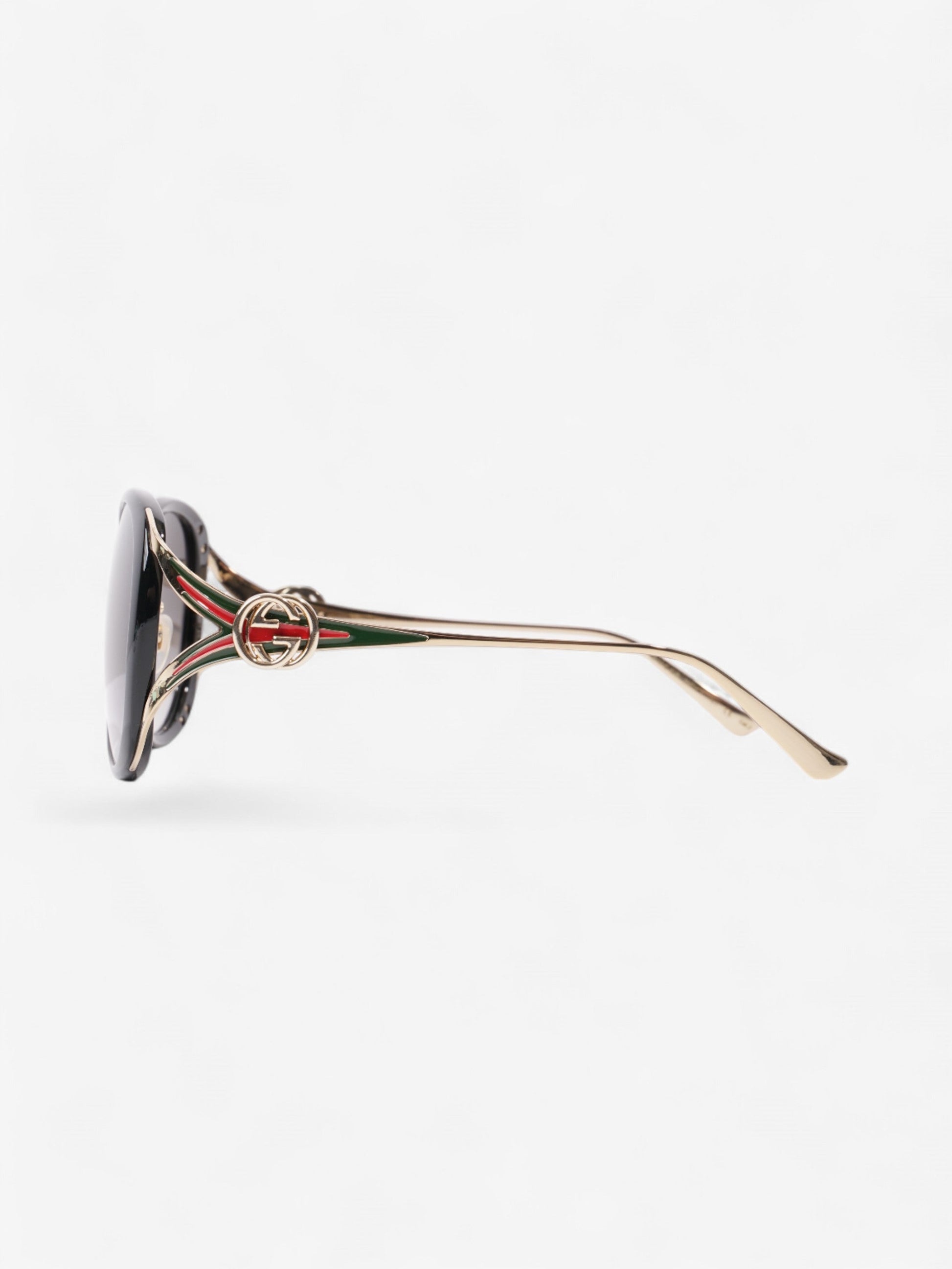 Gucci GG Web Sunglasses Black / Gold / Green Acetate 130mm