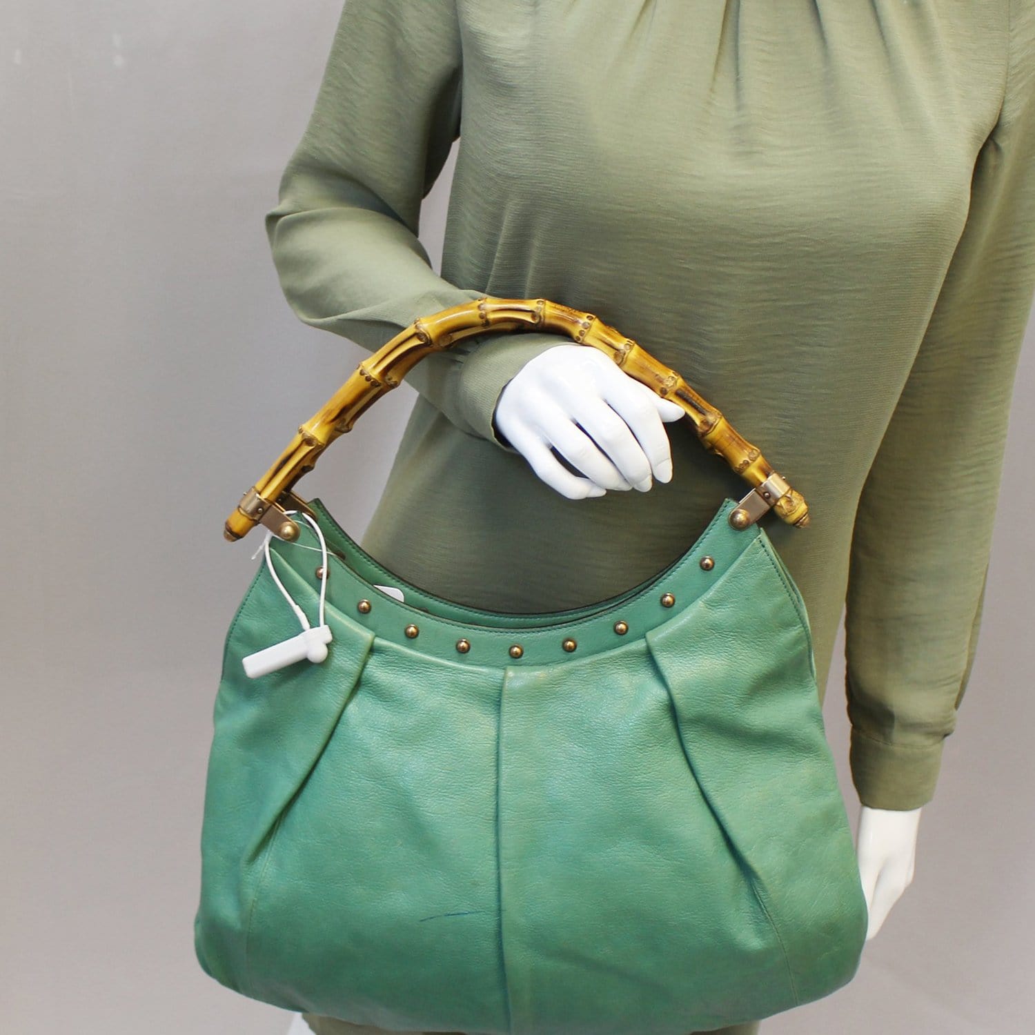GUCCI Green Leather Bamboo Top Handle Shoulder Bag