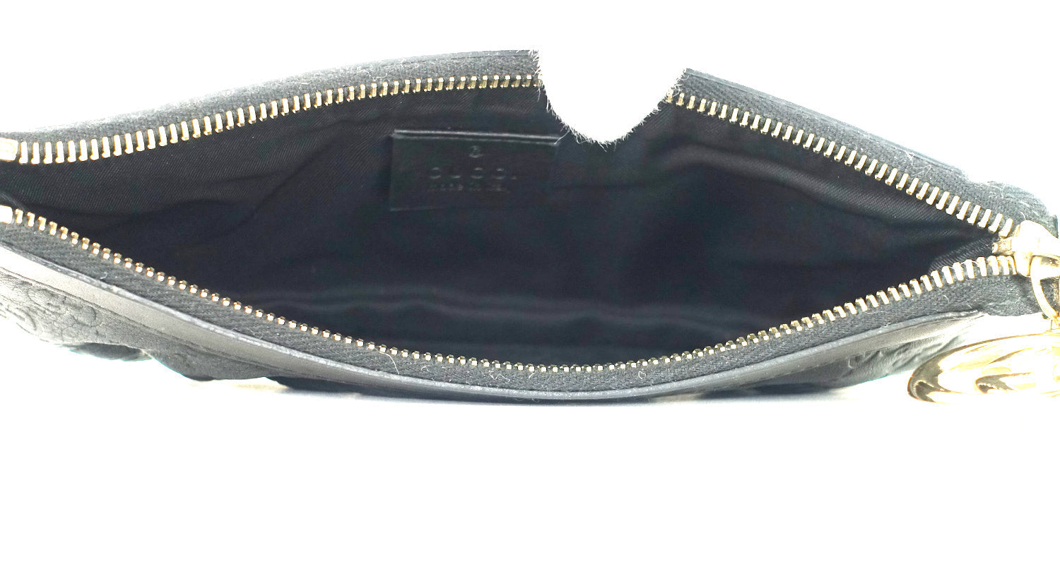 Gucci Sukey Monogram Leather GG Charm Wristlet Bag