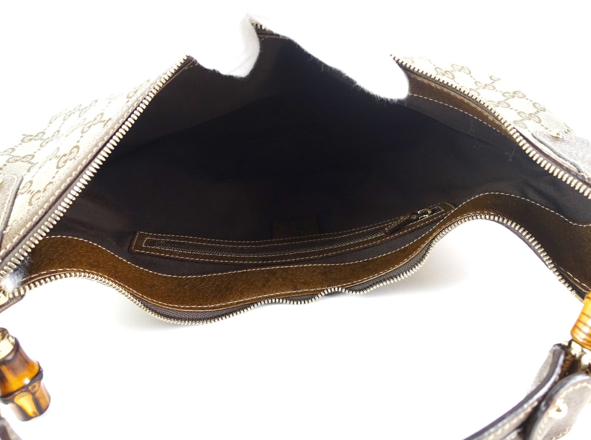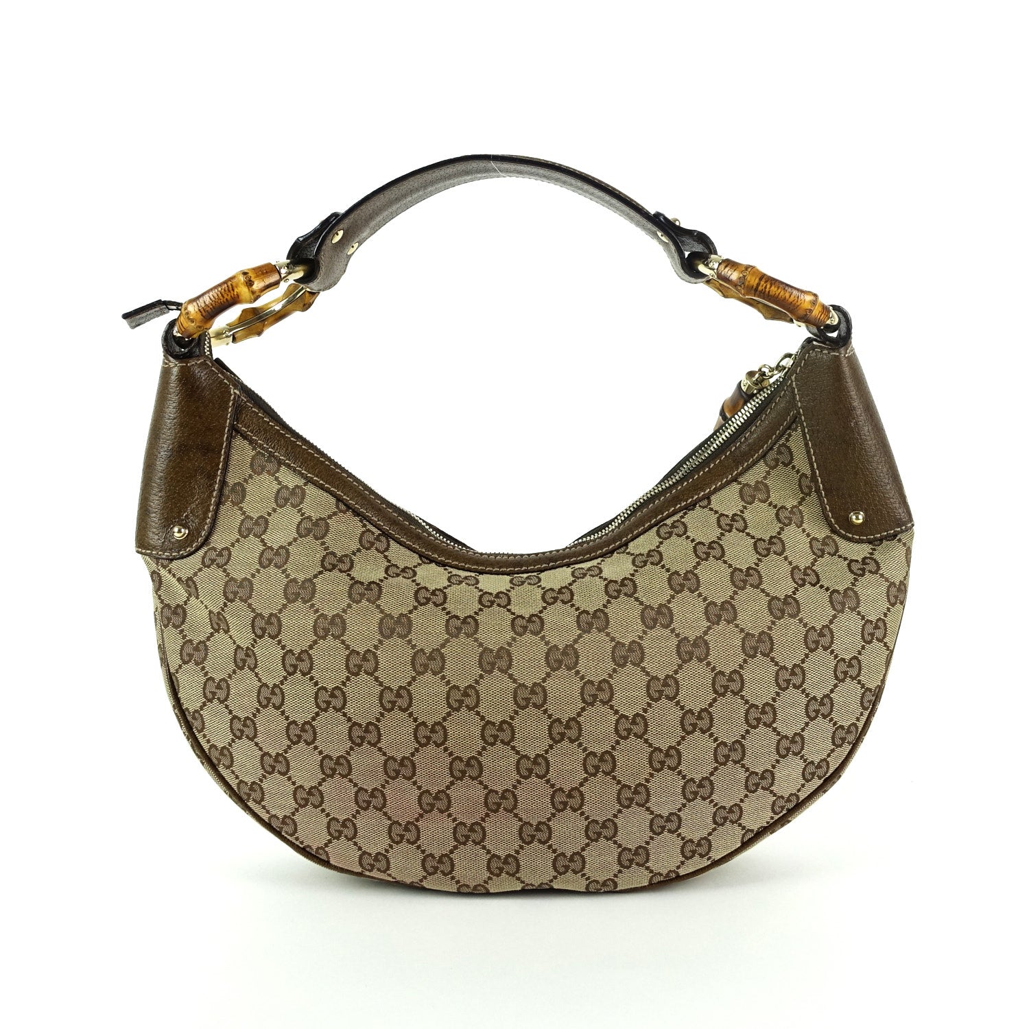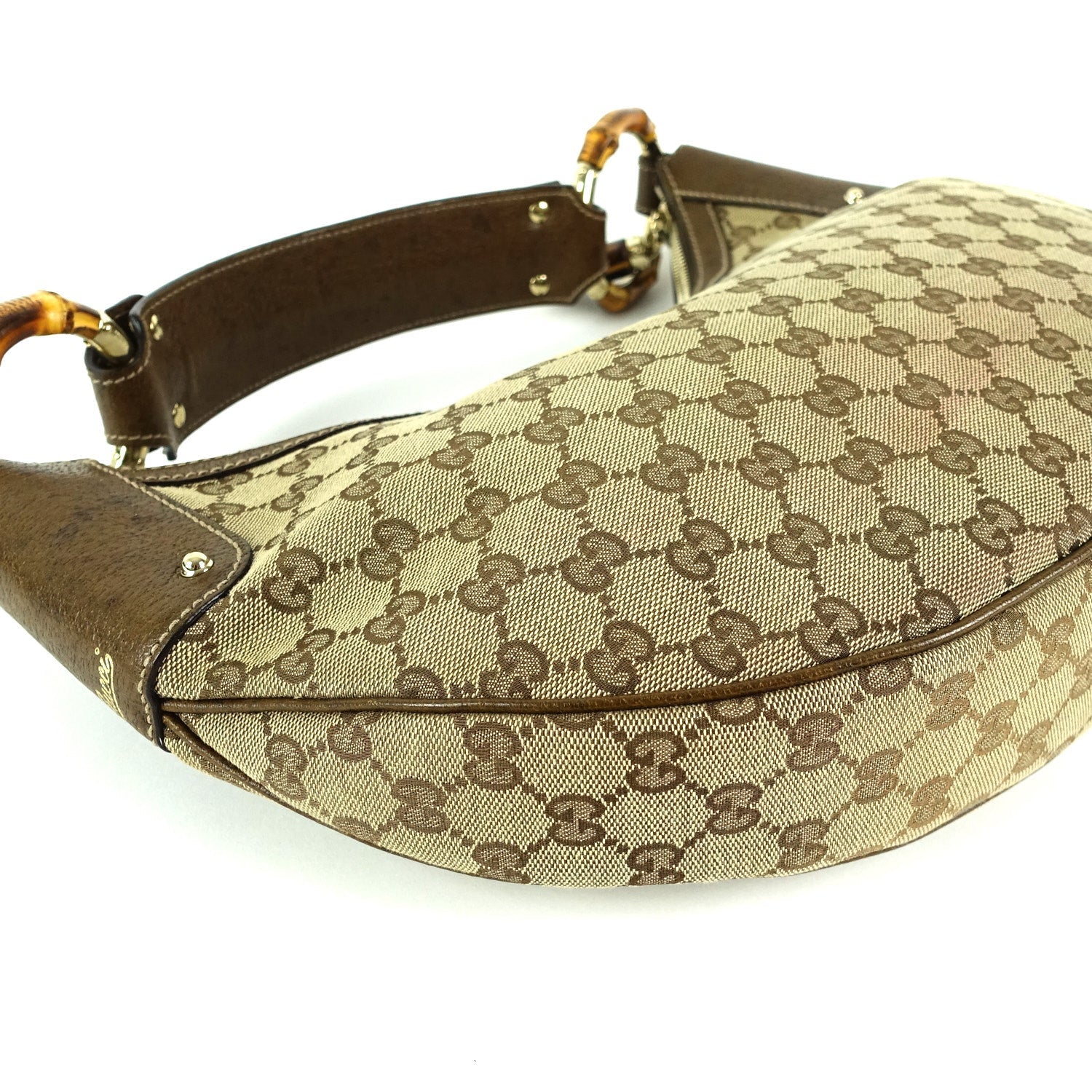 Gucci Monogram Canvas Bamboo Rings Hobo Bag