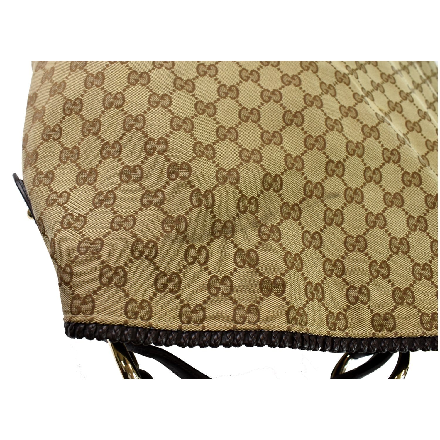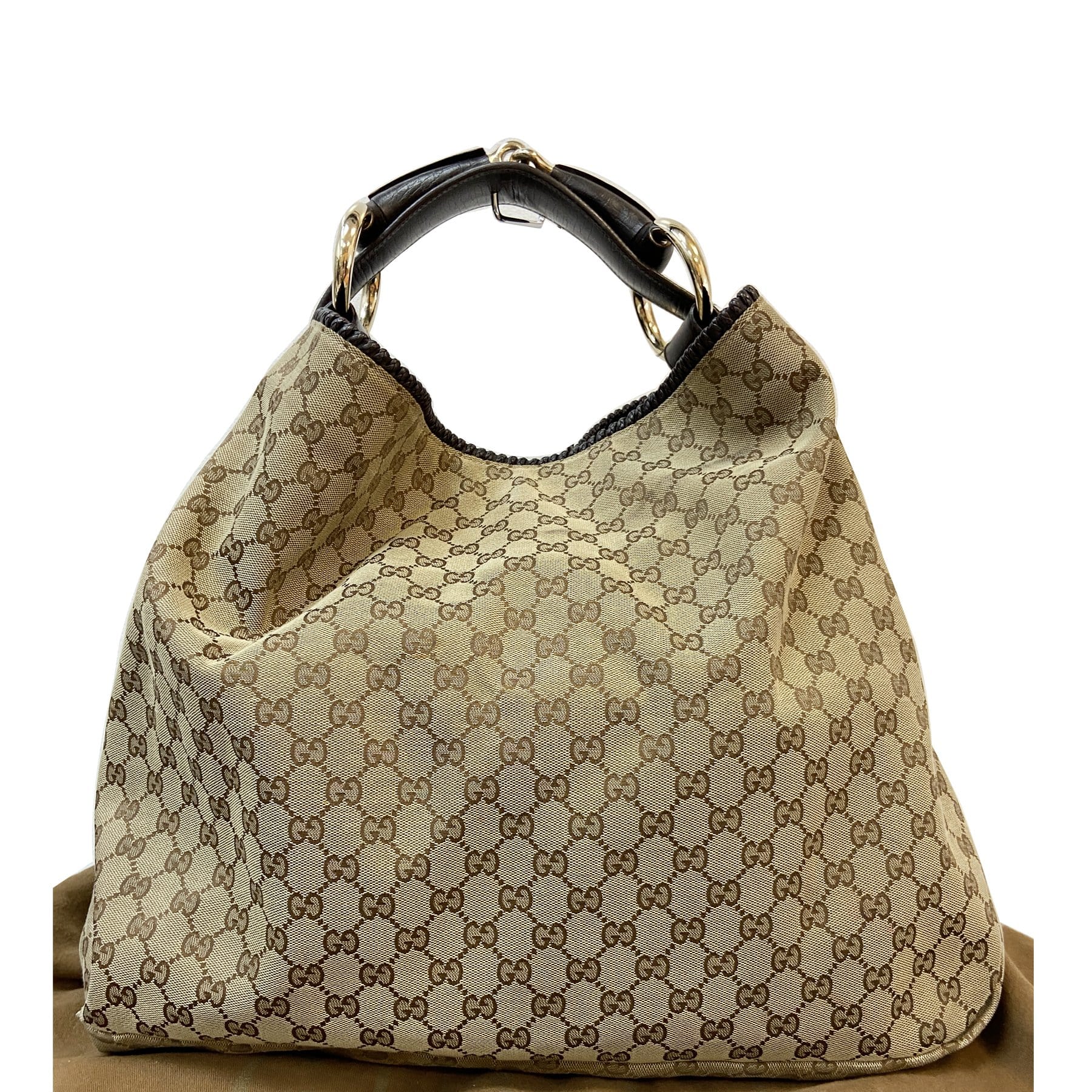 GUCCI Horsebit GG Canvas Large Hobo Bag Beige