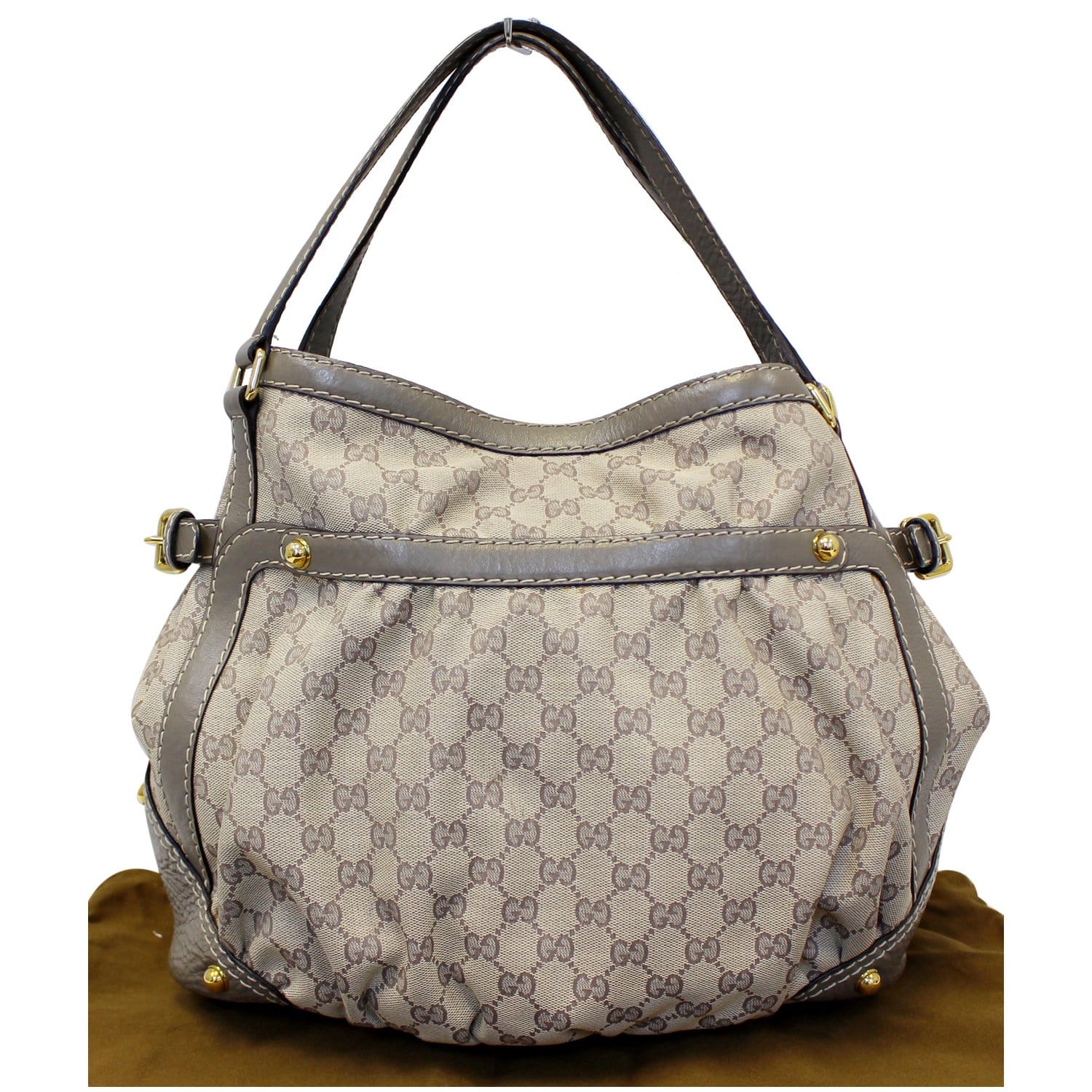 GUCCI Jockey Medium GG Canvas Monogram Tote Bag Beige 203546