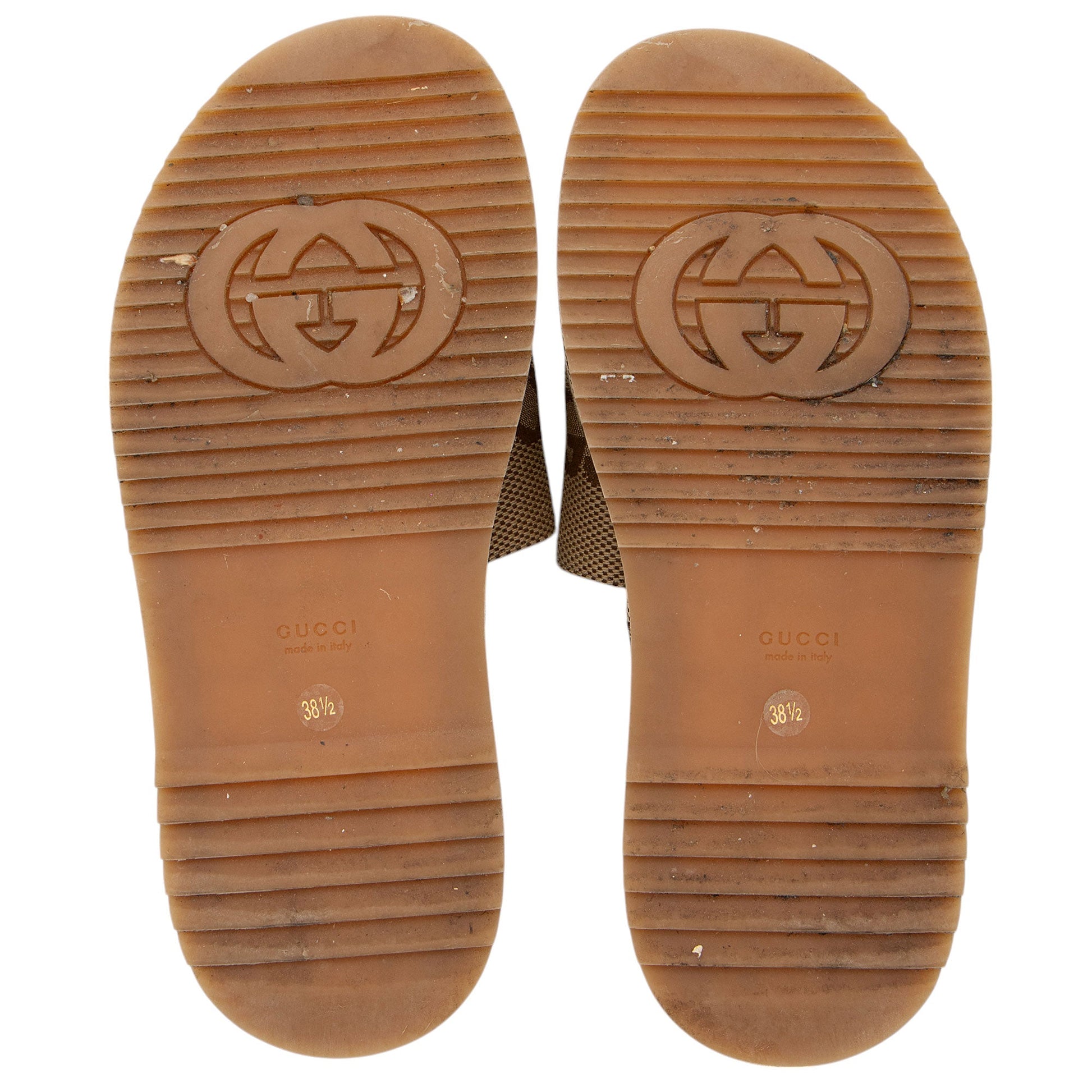 Condition Notes: Visible darkening and marks throughout outsoles. Darkening and marks throughout insoles. Please note: Gucci shoes typically run 1 full size smaller. All sizing is dependent of shoe style.