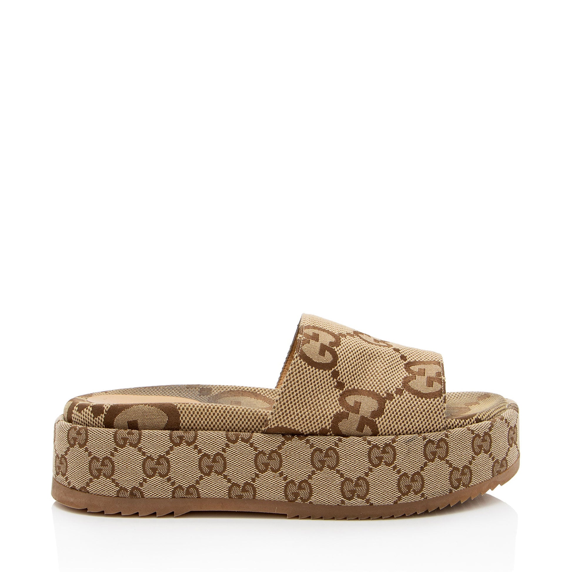 Gucci Jumbo GG Canvas Angelina Slide Platform Sandals - Size 8.5 / 38.5 (SHF-bkBL9w)