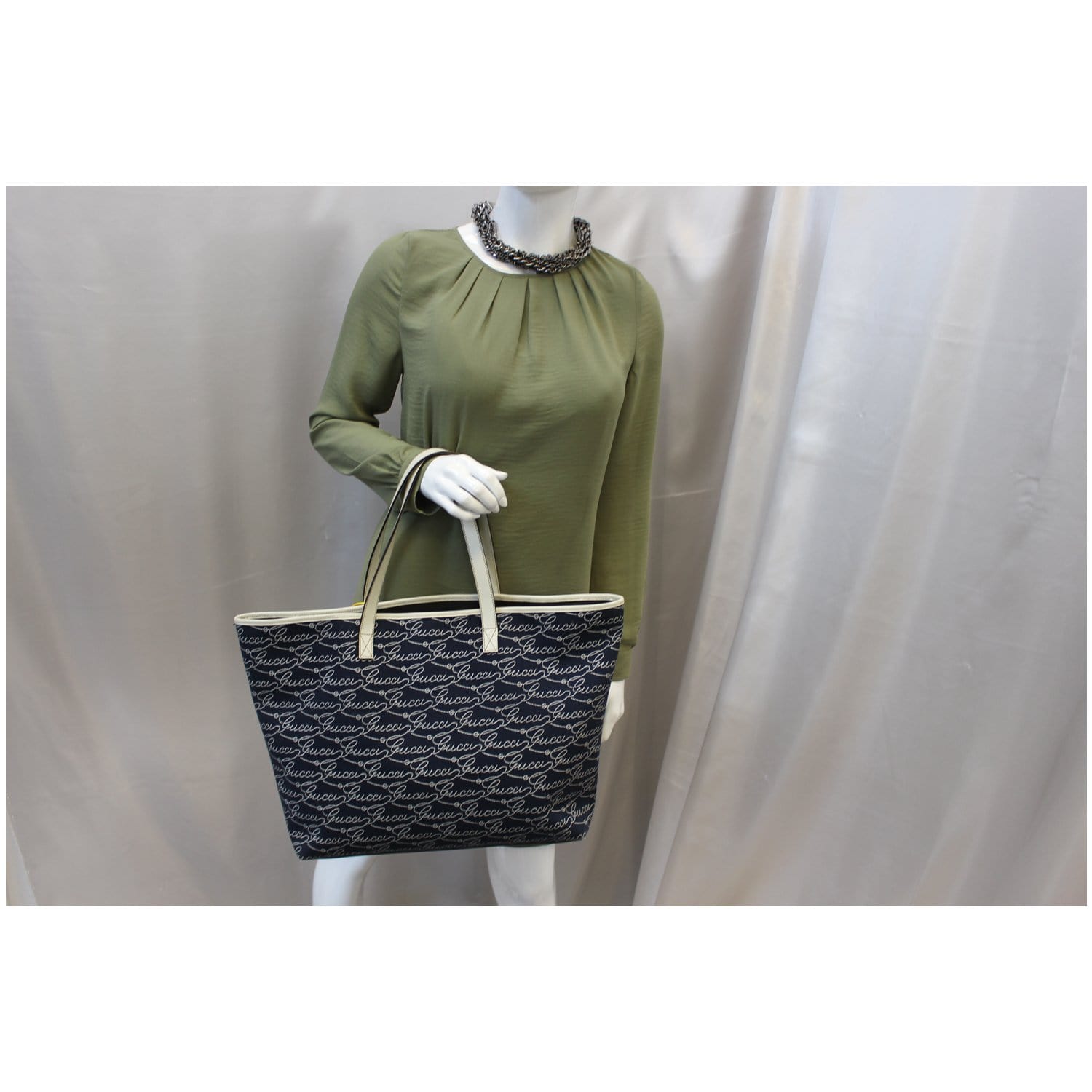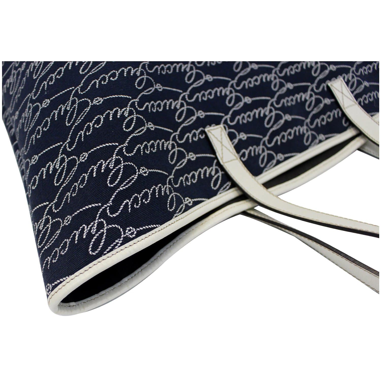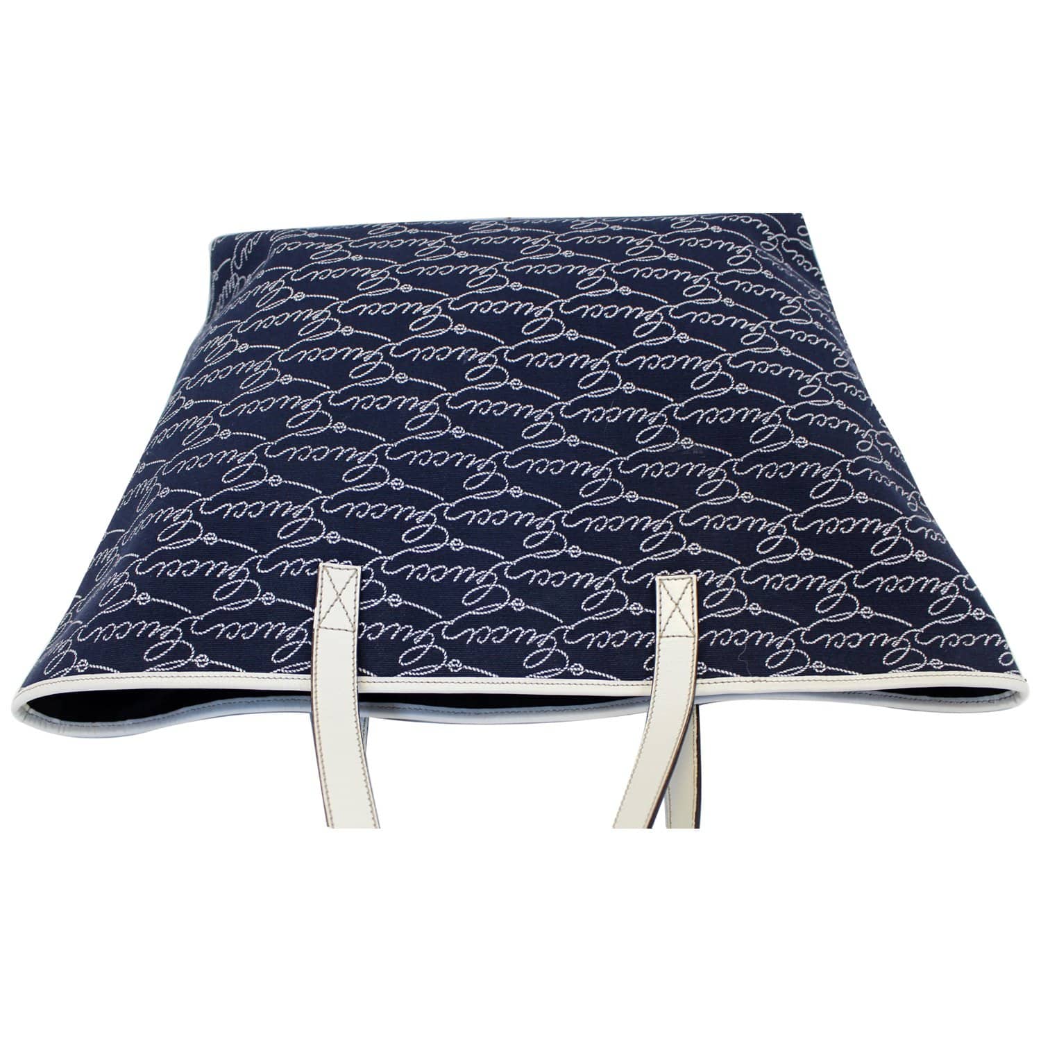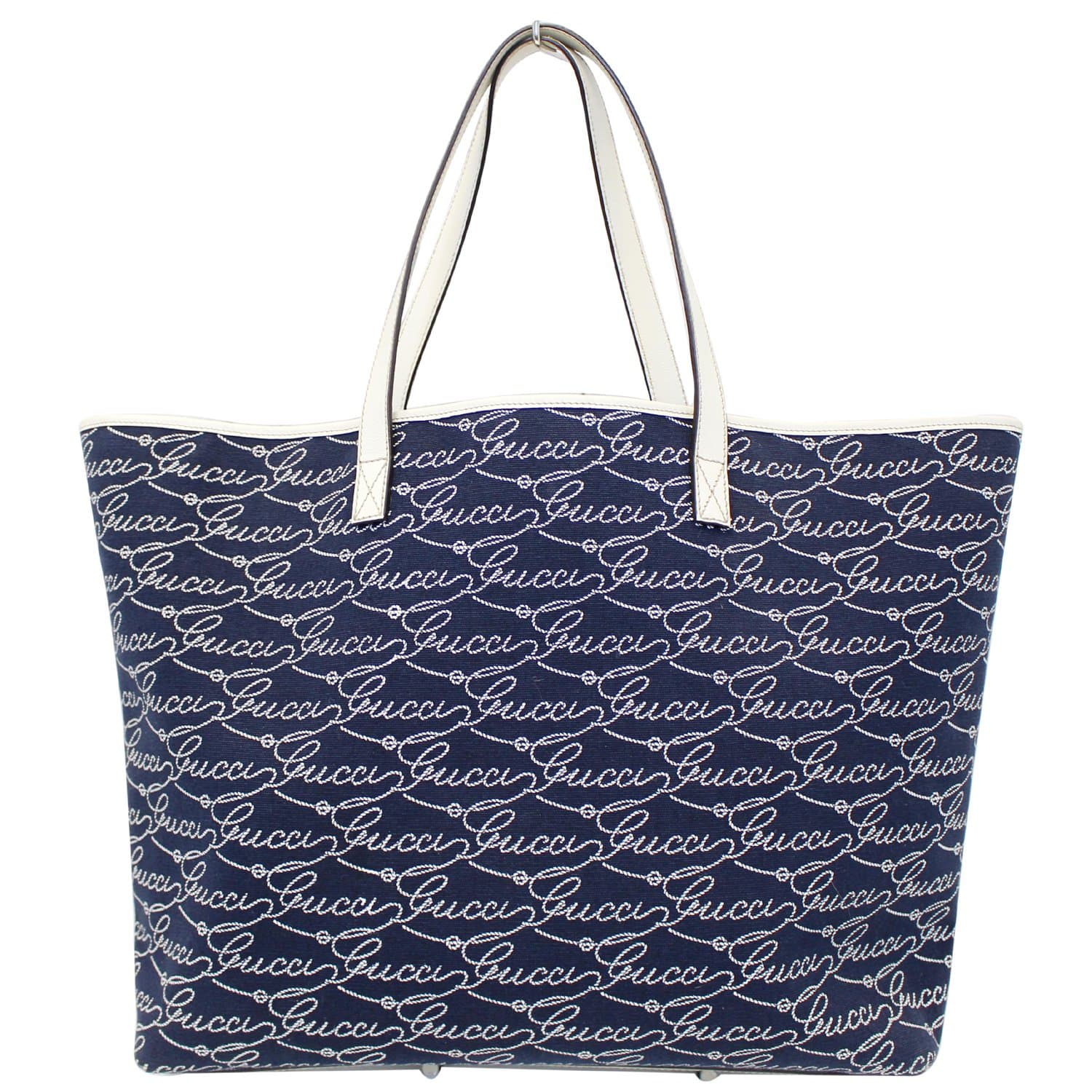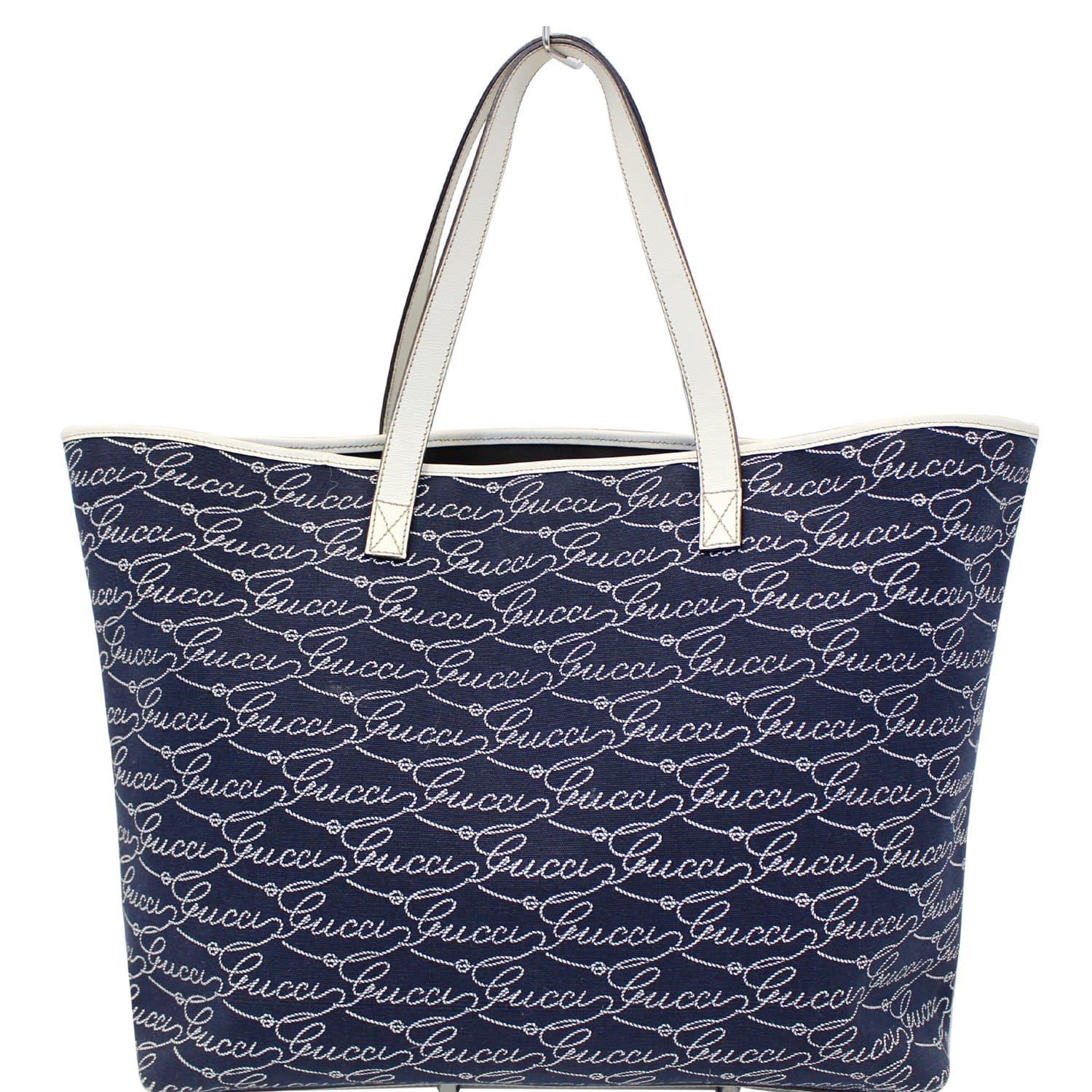 GUCCI Large Blue Canvas White Script Tote Bag 257245
