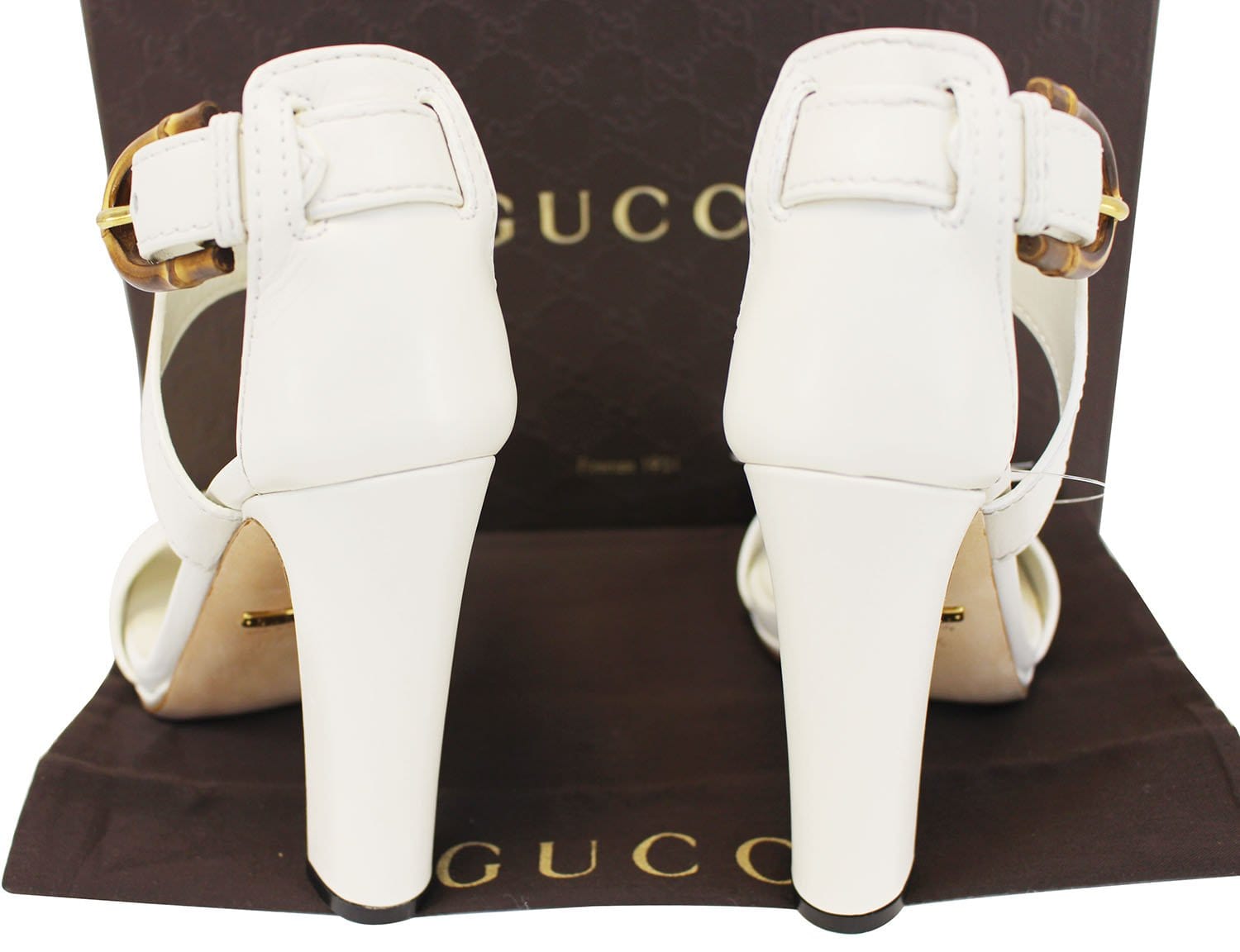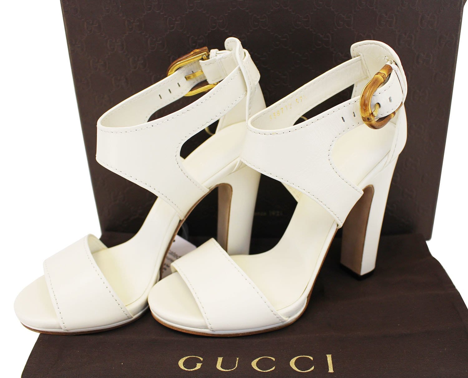 GUCCI Lifford Leather Off White Platform Sandal Bamboo Buckle 338712