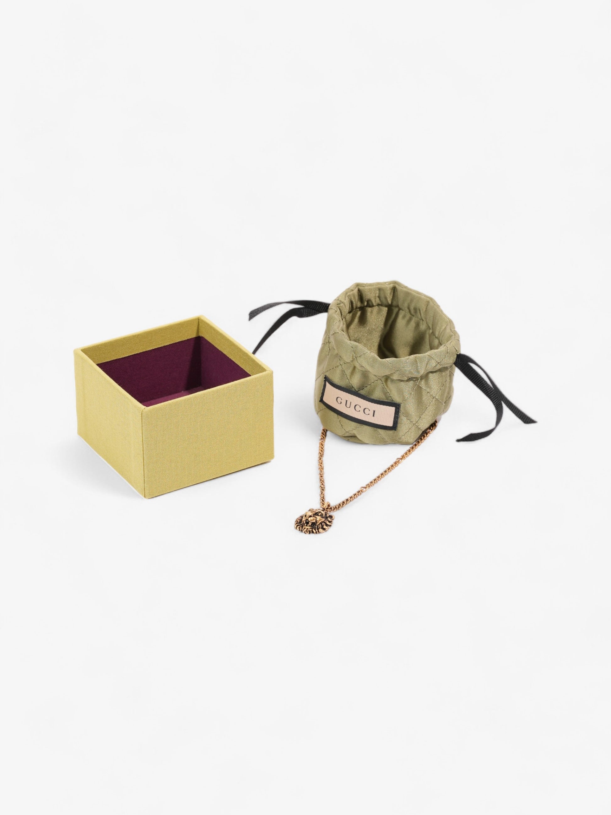 Gucci Lion Head Pendant Necklace Gold Base Metal