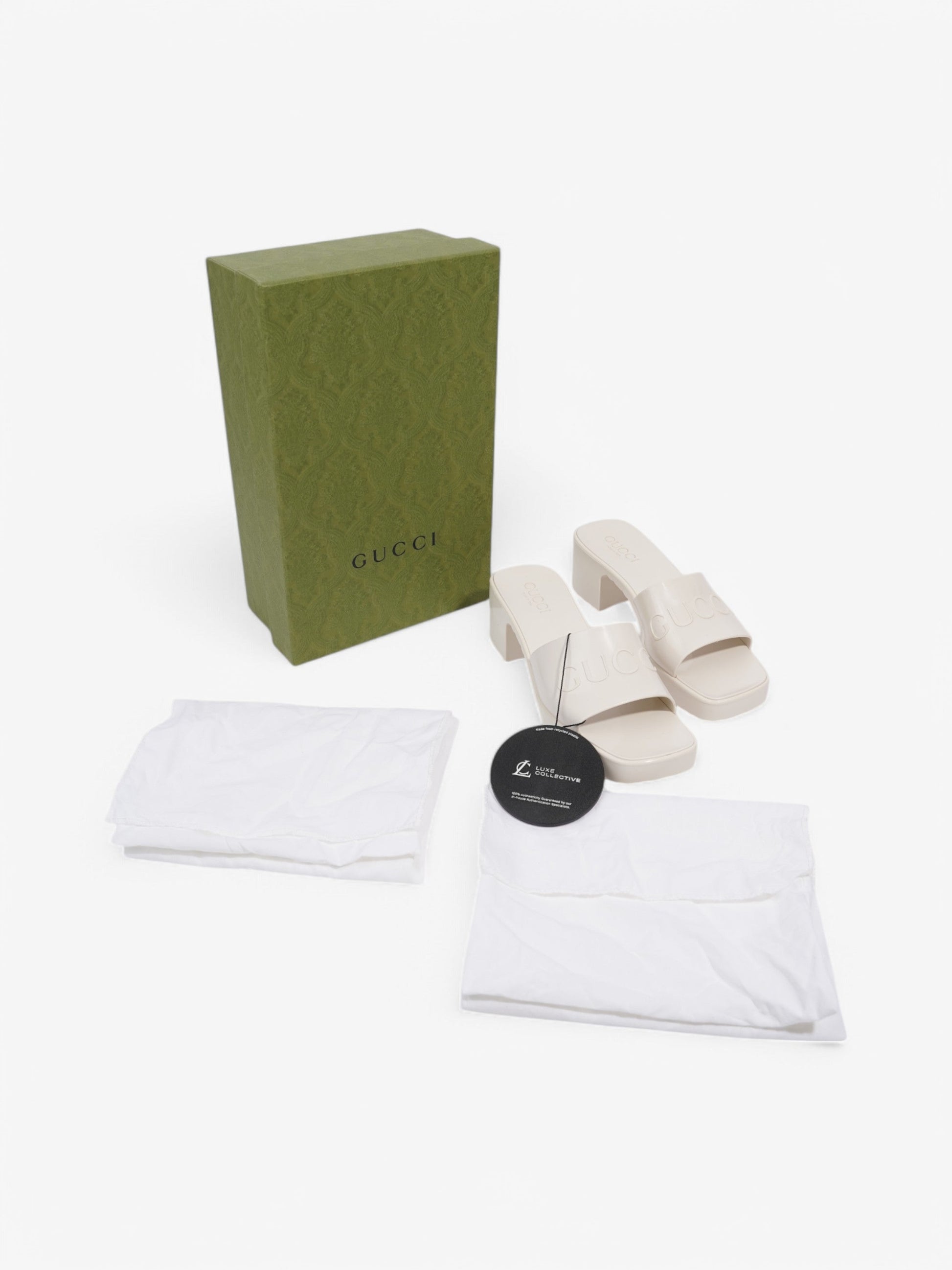 Gucci Logo Embossed Sandals 50 Cream Rubber EU 37 UK 4