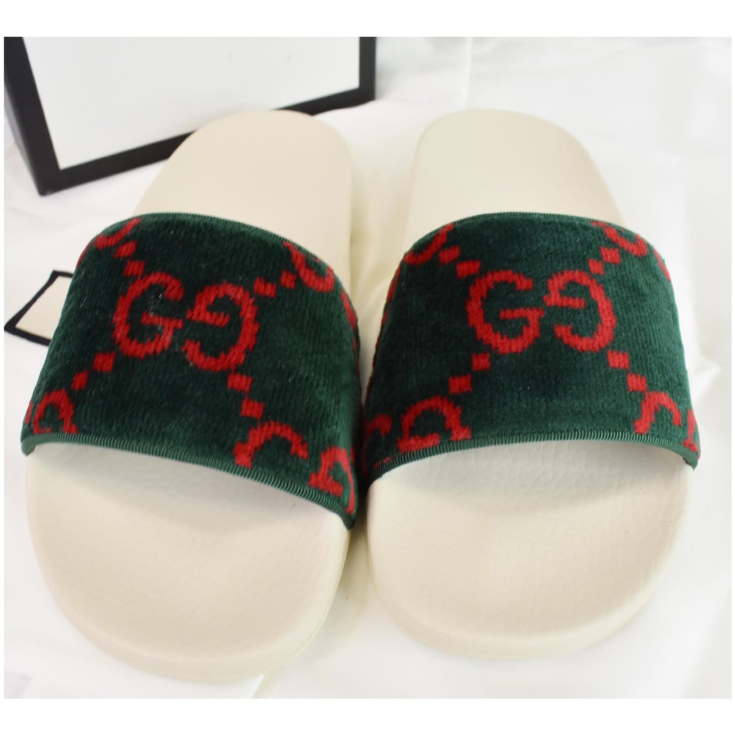 GUCCI Logo Velvet Monogram Slide Sandal 577676 Size 37 Green - Last Call