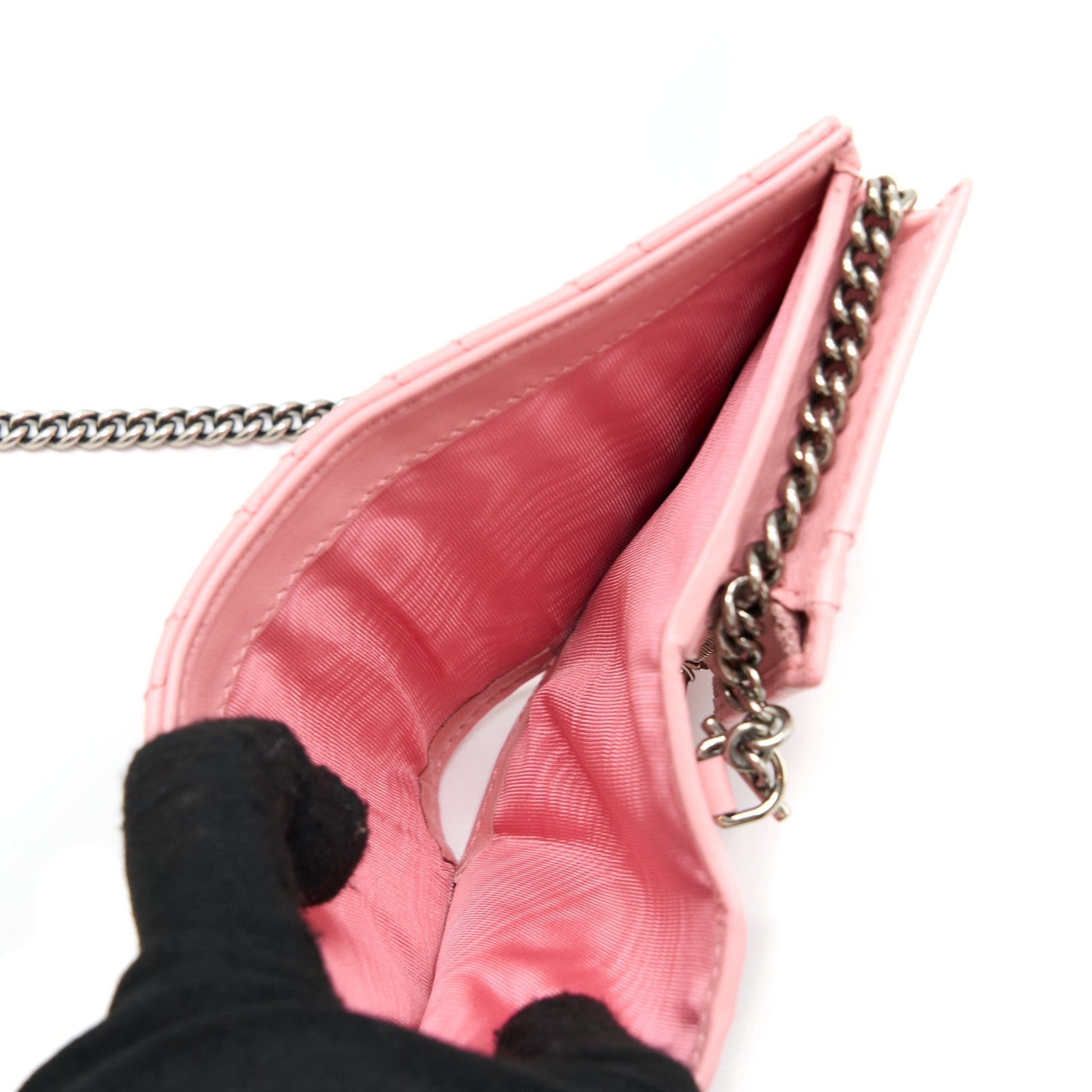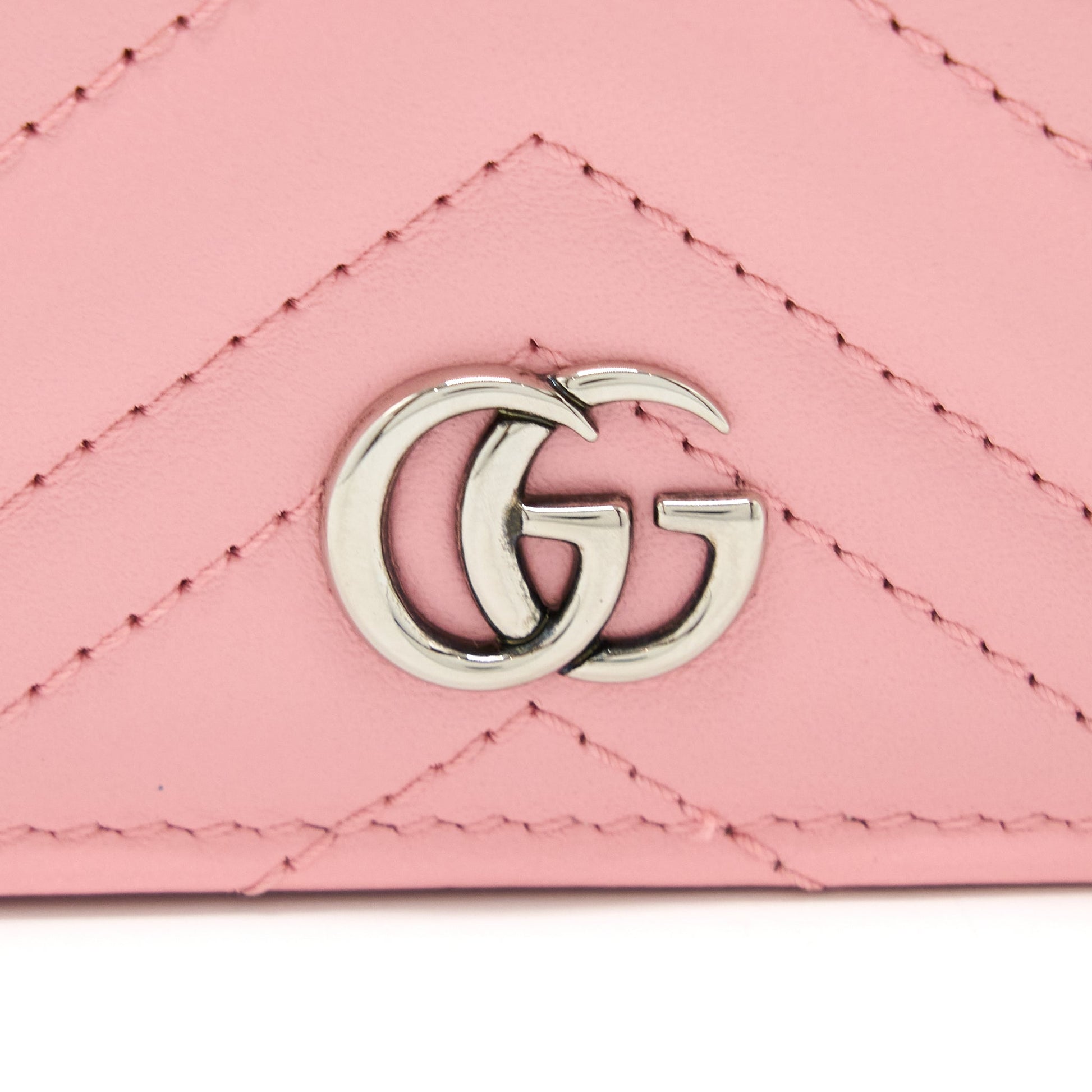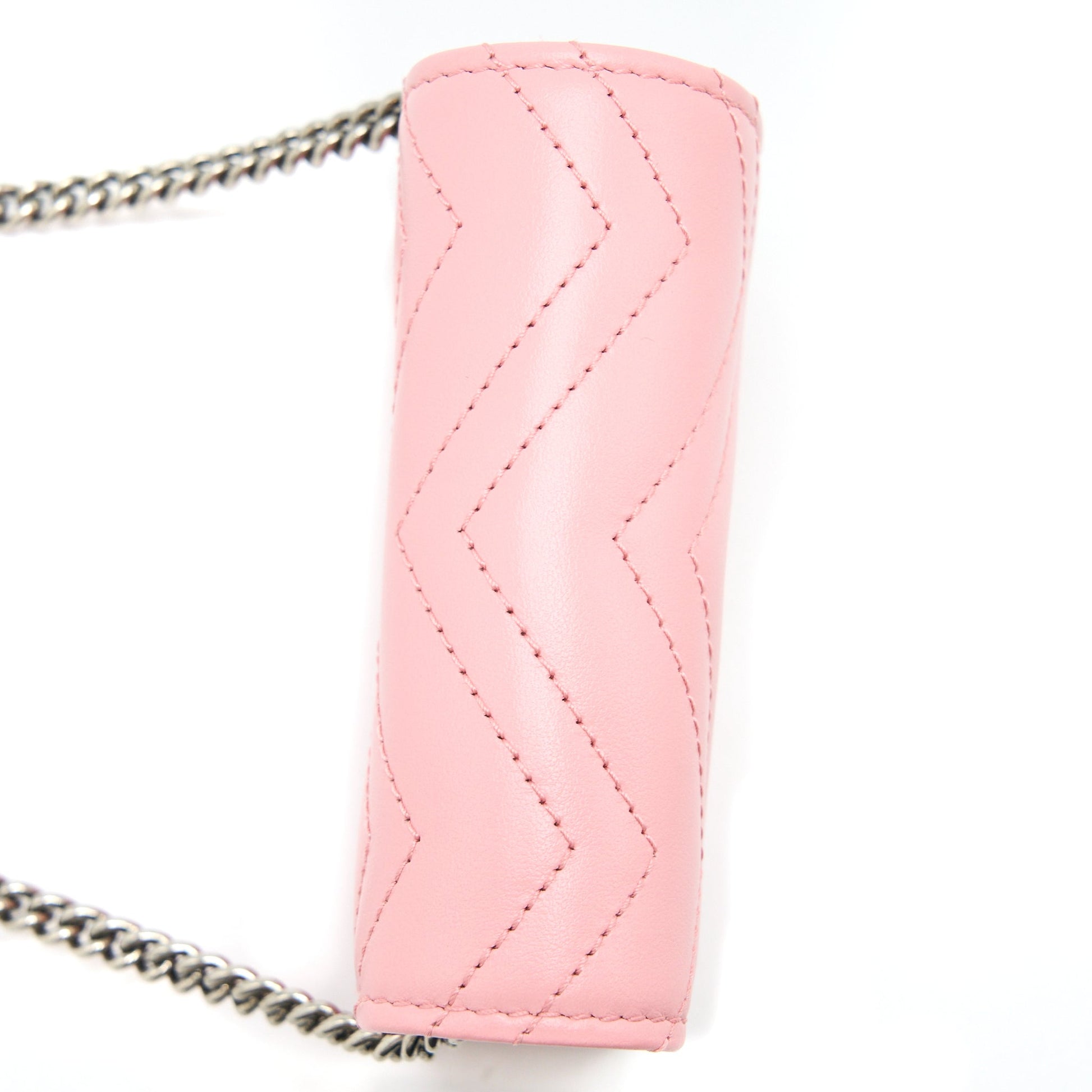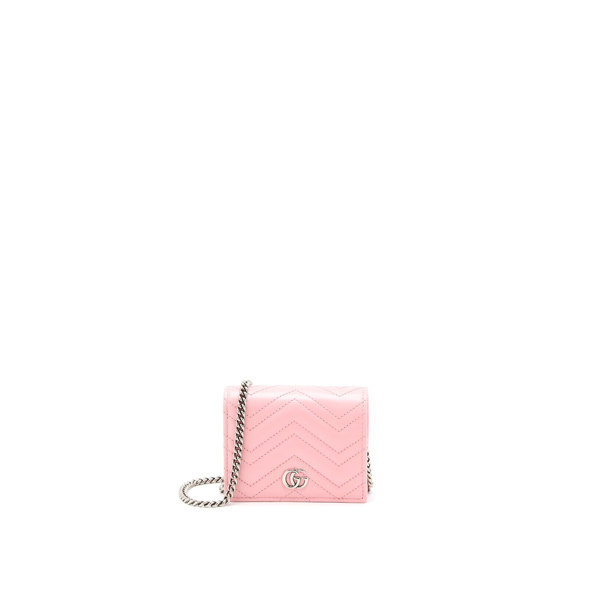 Gucci Marmont Card Holder with Chain Calfskin Pink SHW