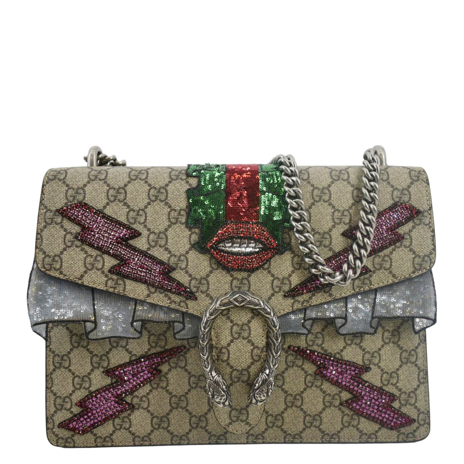 GUCCI Dionysus Medium GG Supreme Embroidered Sequin Shoulder Bag Beige 400235