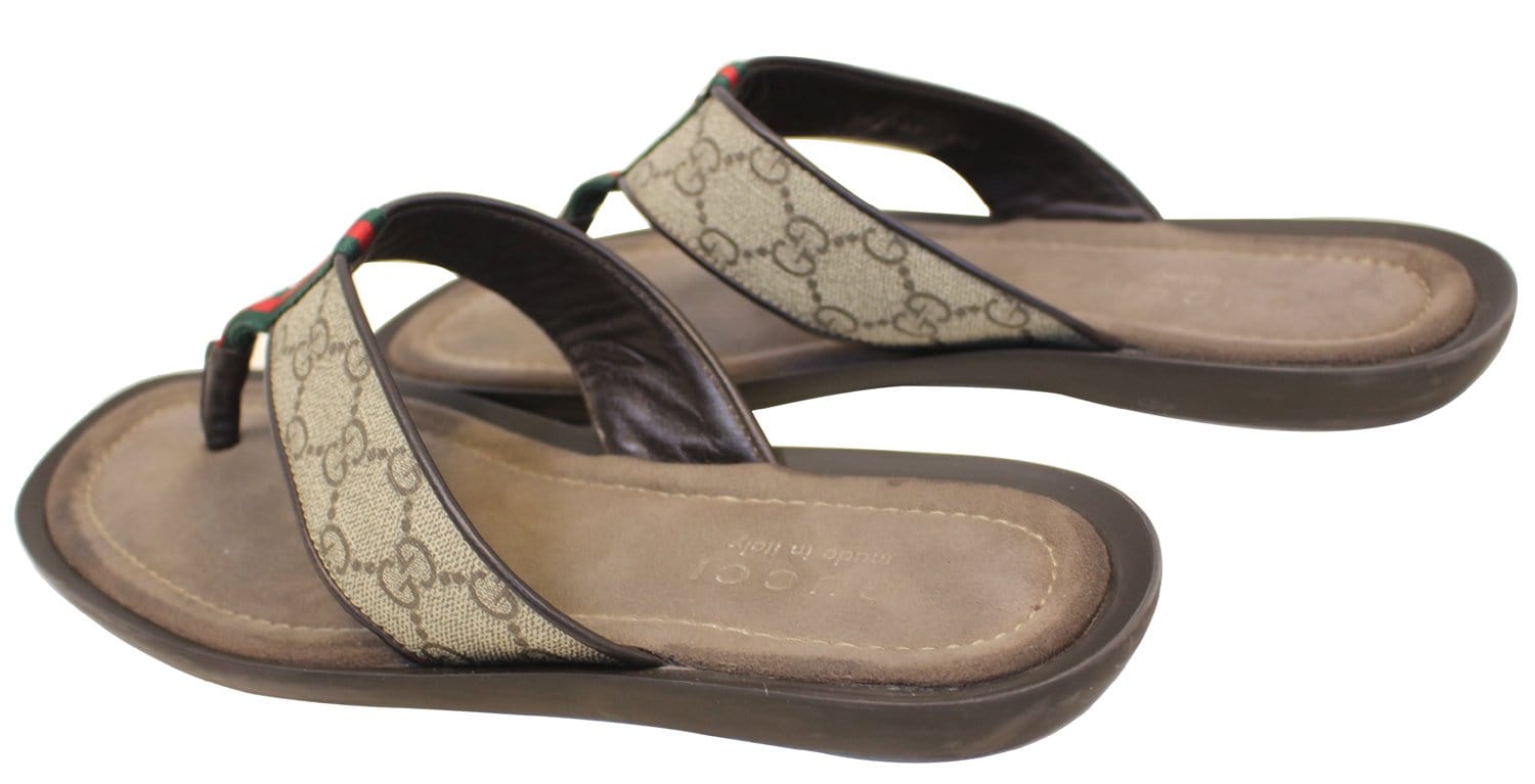 Gucci Men's GG Supreme Canvas Flip Flops Sandals Size 8 1/2G