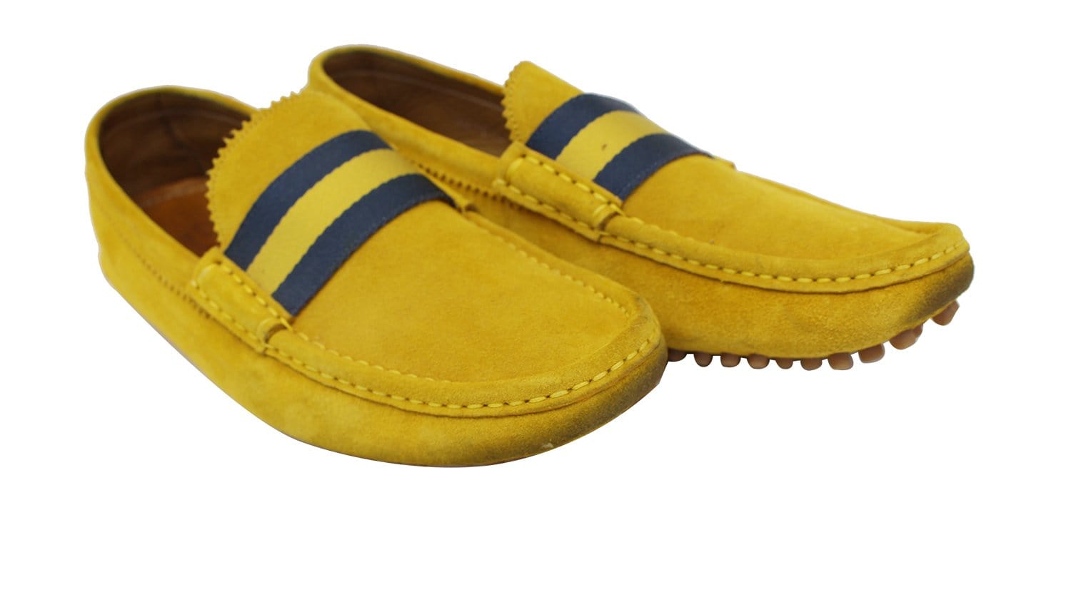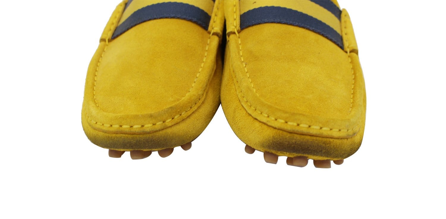 Gucci Men's Yellow Suede web Driver Loafer Size 7.1/2 G