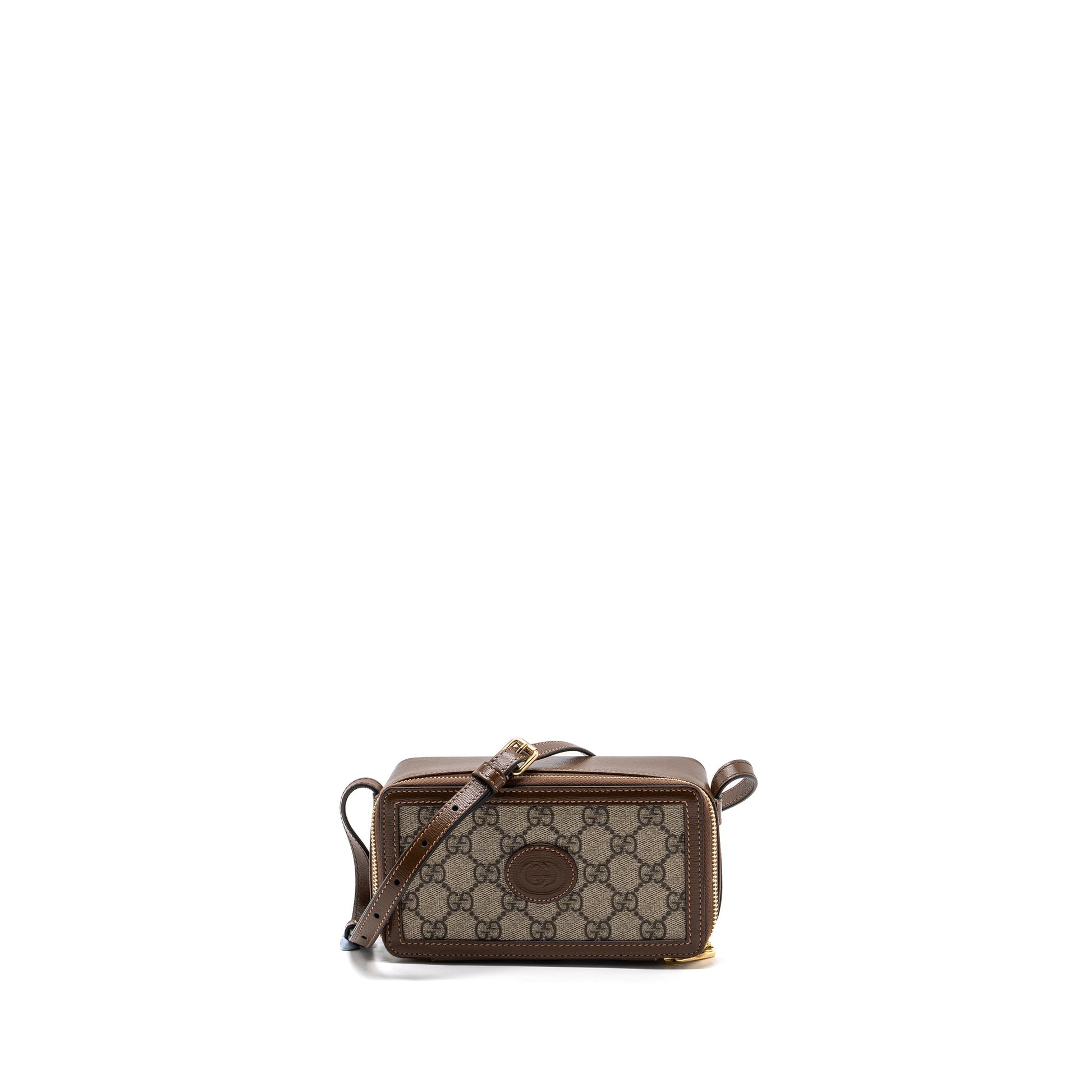 GUCCI MINI CROSSBODY BOX BAG INTERLOCKING GG Supreme CANVAS / LEATHER