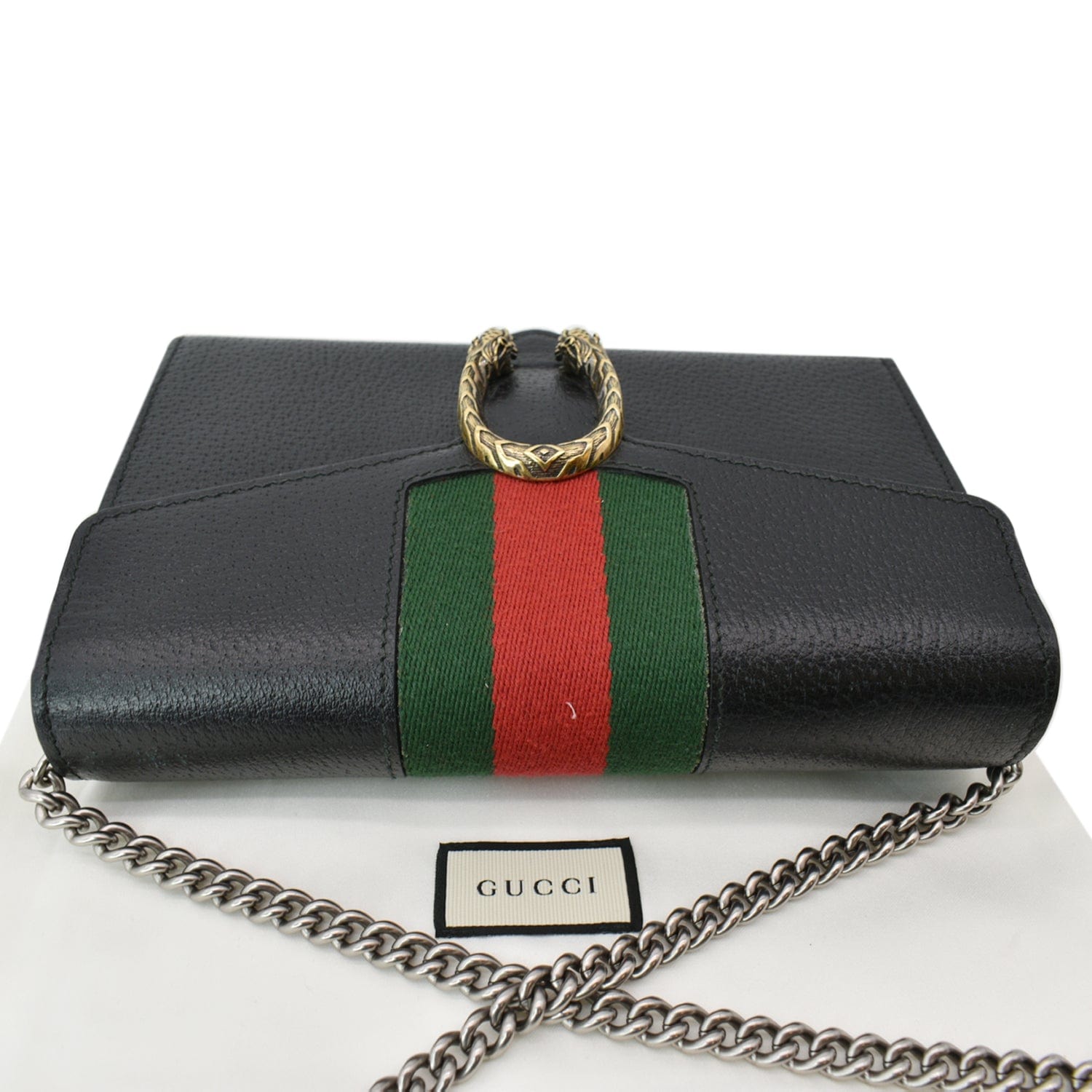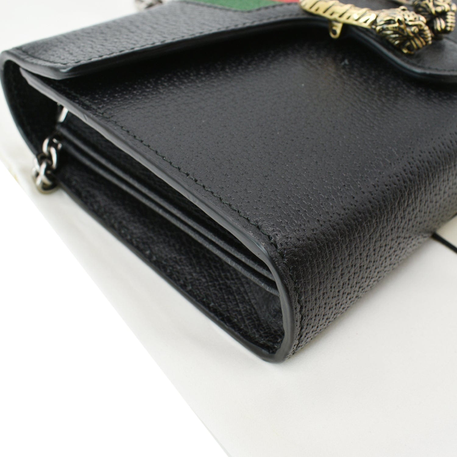 GUCCI Dionysus Mini Web Leather Chain Wallet Black 481377