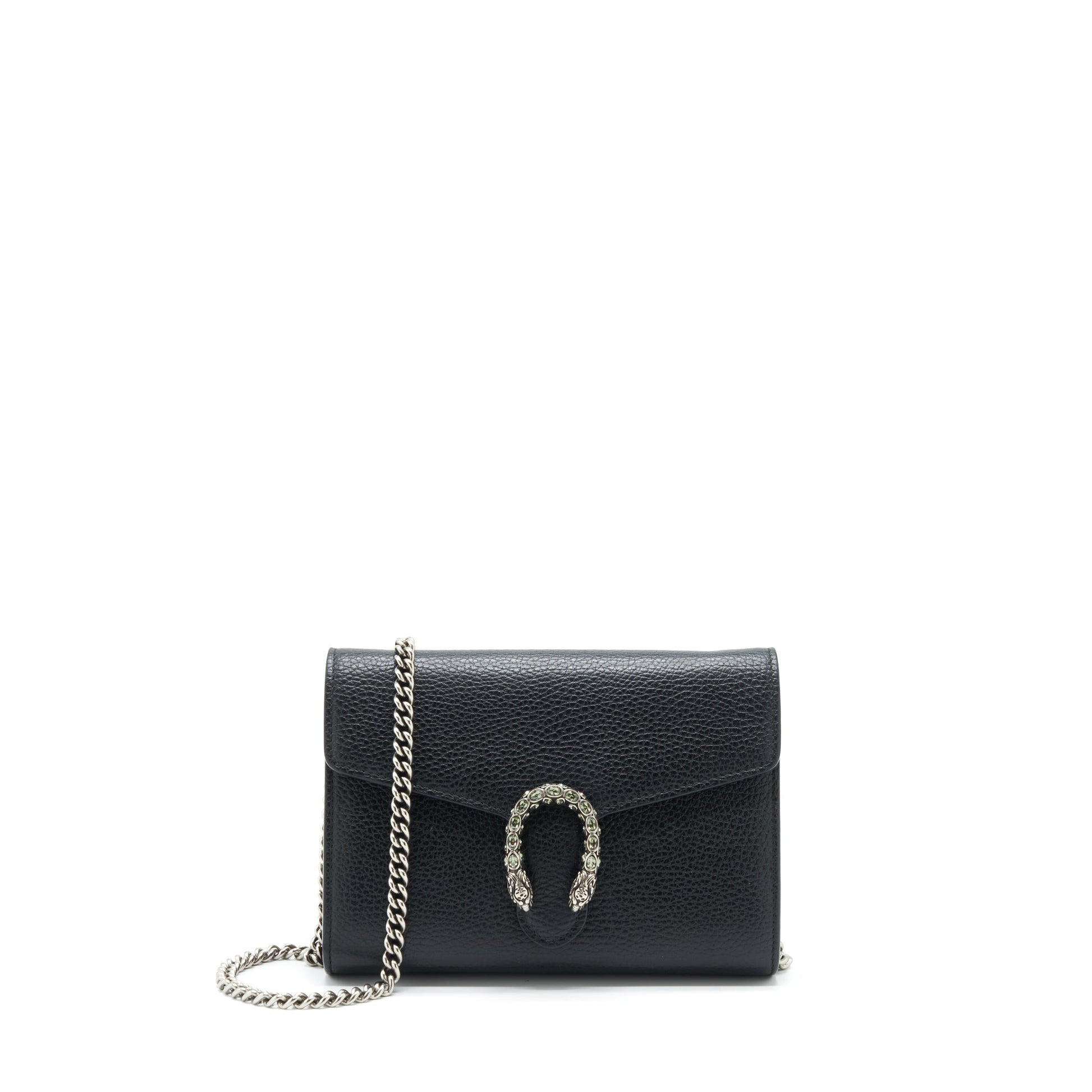 Gucci Mini Dionysus Wallet On Chain Grained Calfskin Black SHW
