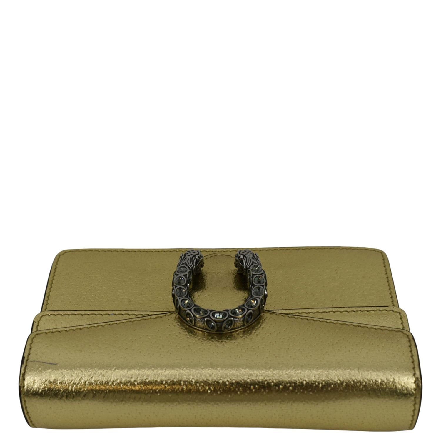 GUCCI Dionysus Super Mini Metallic Leather Crossbody Bag Gold 476432