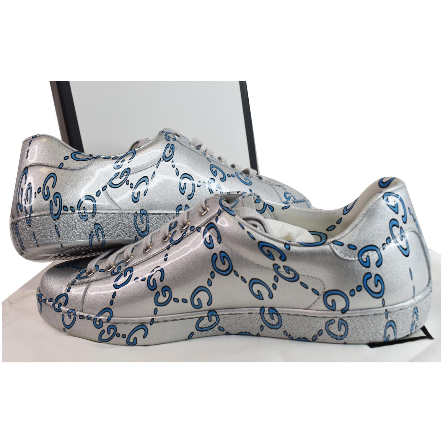 GUCCI Miro Rubber Wax Mens New Ace Ghost Sneakers Silver US 10
