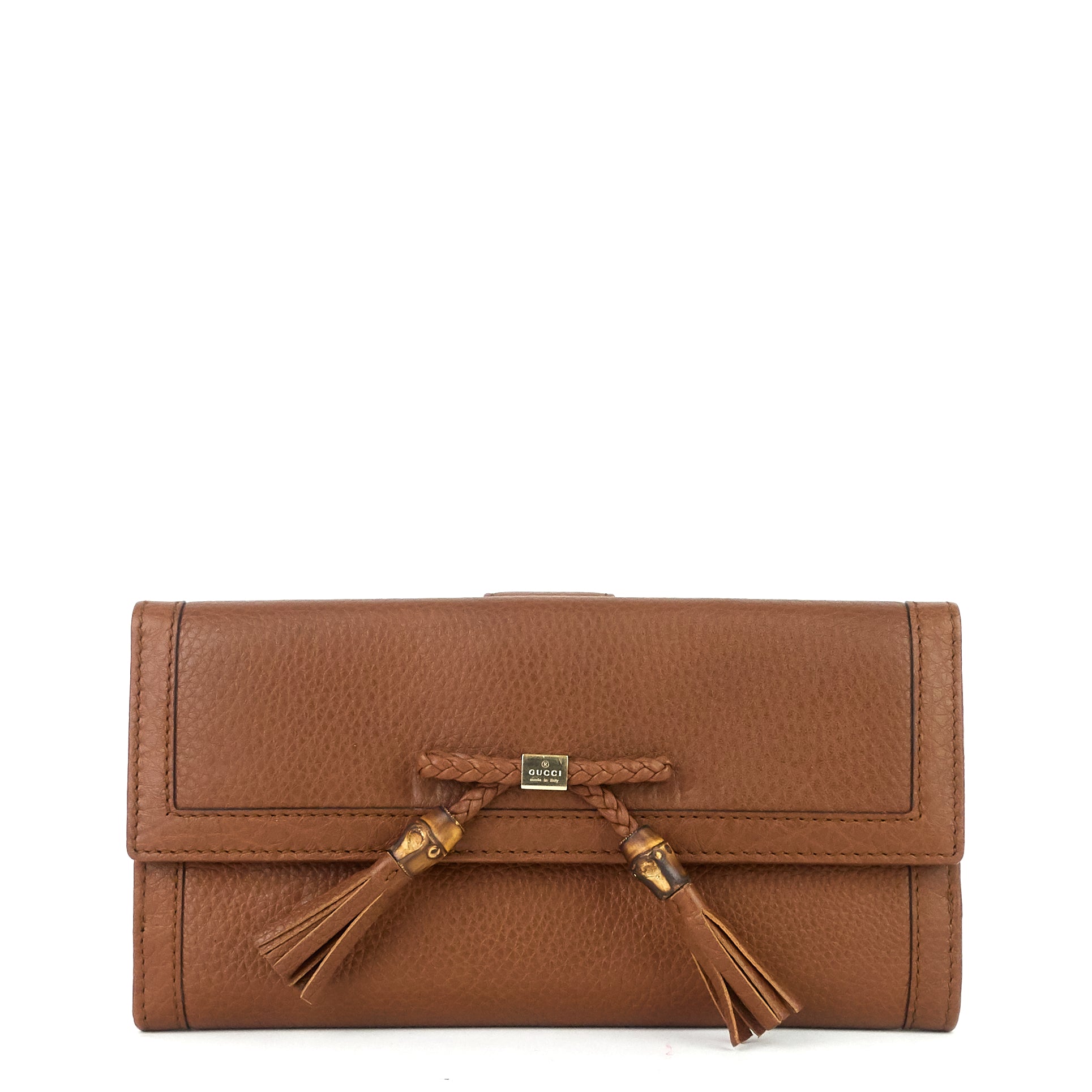 Gucci Pebbled Leather Bamboo Tassel Bella Continental Wallet