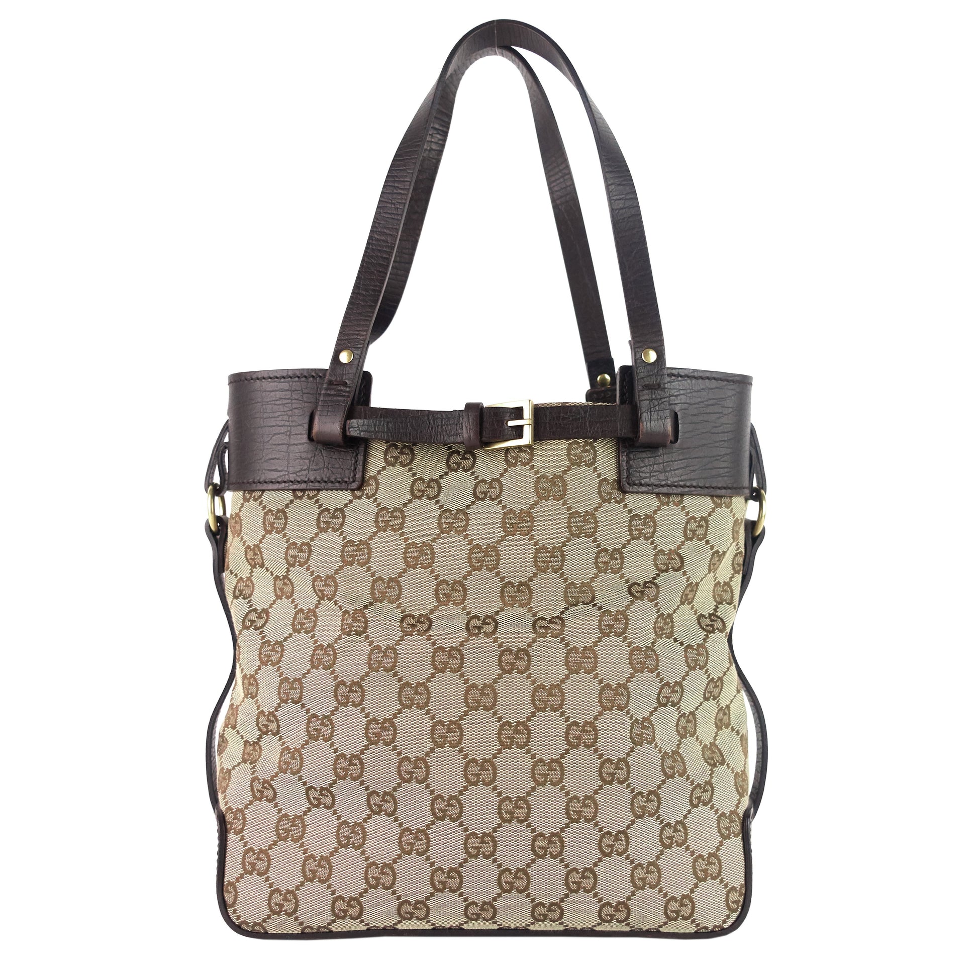 Gucci Ornamental Buckle Monogram Canvas Tote Bag