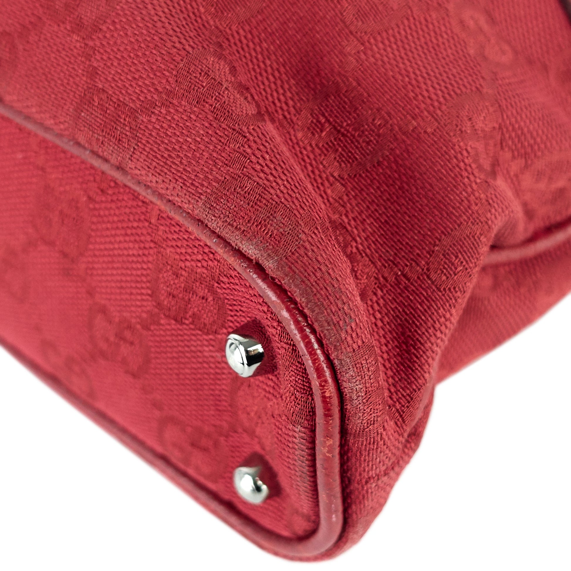 Overall: The exterior canvas is in excellent condition with faint scuffing to the bottom corner edges. The leather trim shows minor scuffing. The leather handles have faded where they were held and the black glazing along the side of each handle shows cracking. The interior has several faint stains, but otherwise is clean and in excellent condition. The hardware remains shiny with scratching to the tips of the protective feet.