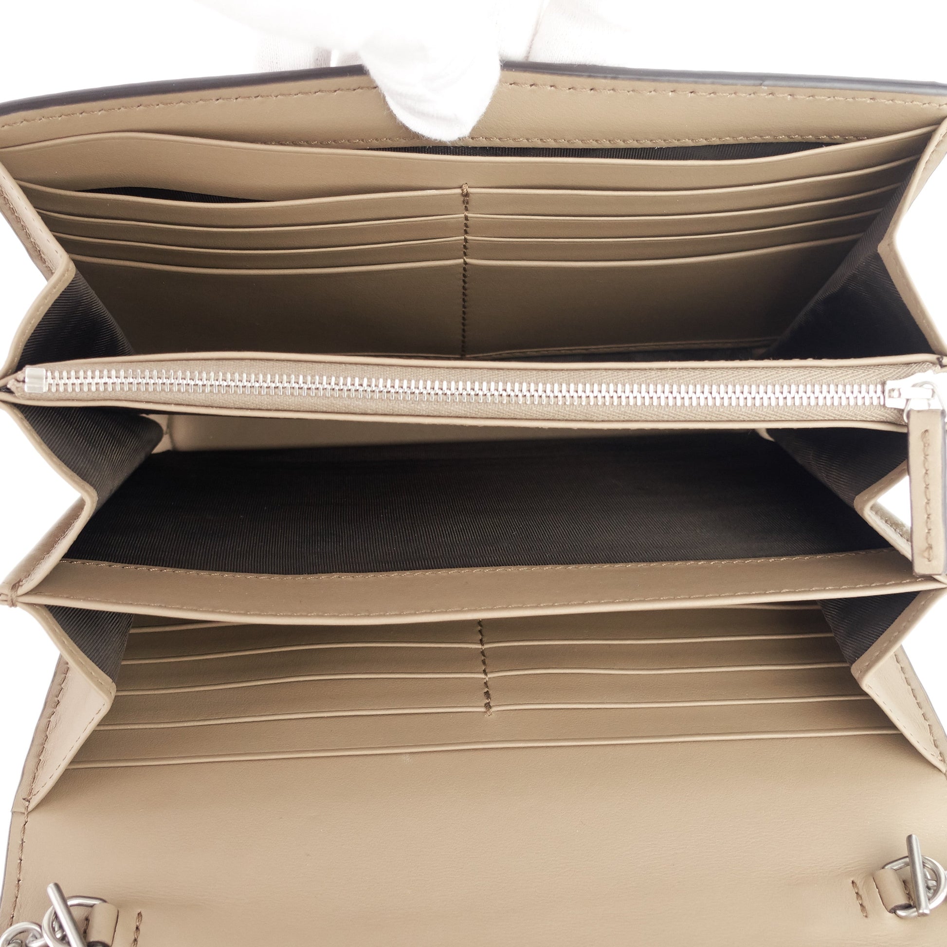 Interior pockets | Sixteen card slots; three gusset pockets; two flat wall pockets; one zipped divider pocket |