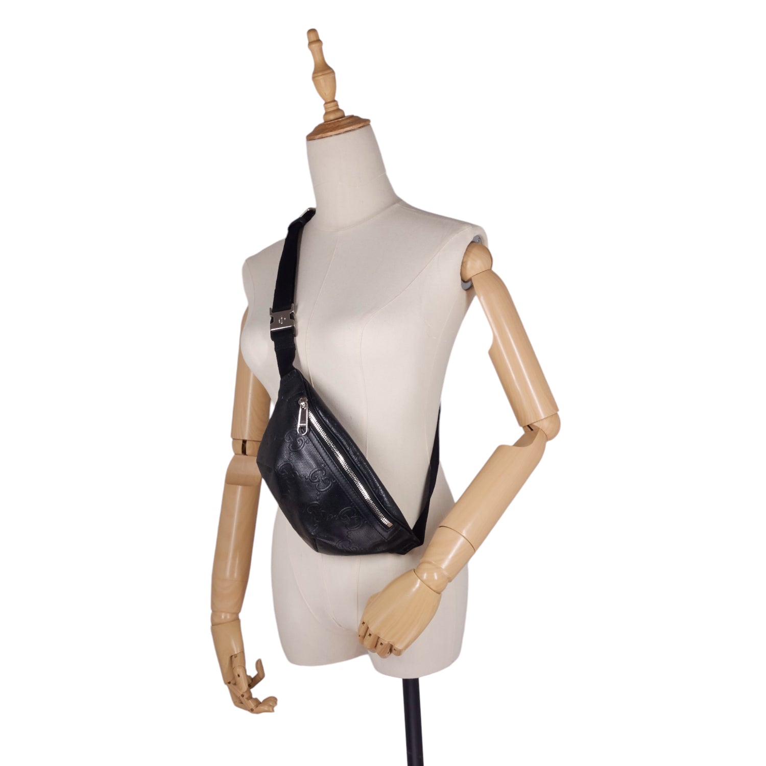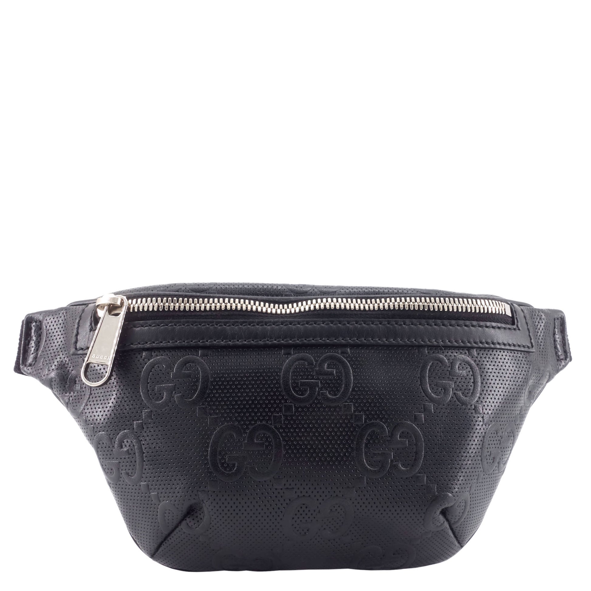 Logo embossing and luxe leather with allover perforations distinguish a compact bag designed with an adjustable waist strap that makes hands-free carrying a breeze.