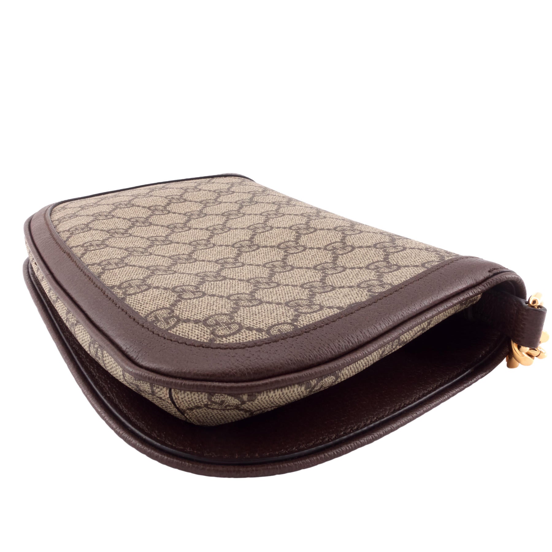 Drawing inspiration from the House's archives, a geometrically shaped version of the Interlocking G sits front and center on this slim shoulder bag crafted from GG Supreme coated canvas. It comes equipped with two interchangeable straps for over-the-shoulder or crossbody carry.
