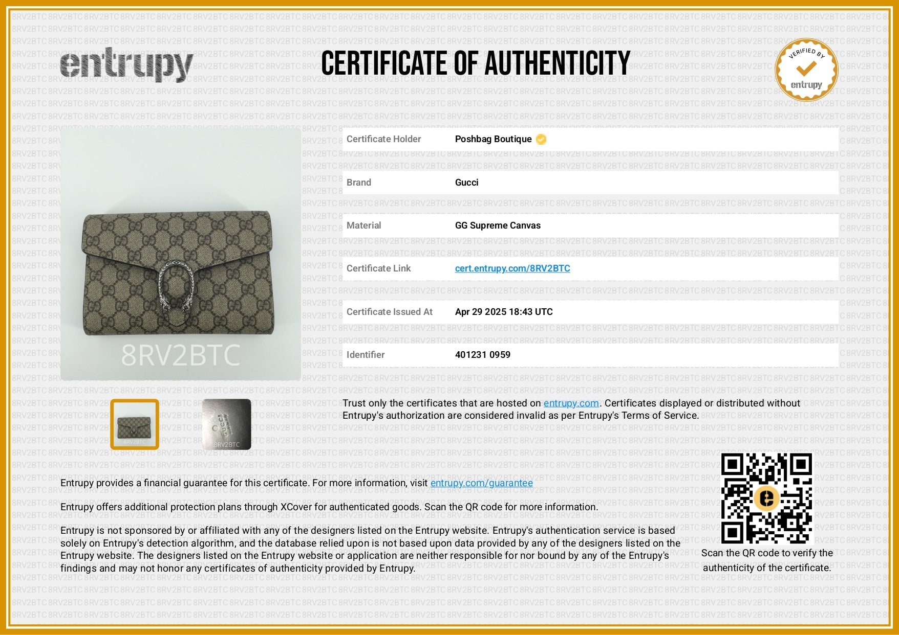 Gucci Dionysus GG Supreme Canvas Wallet on Chain