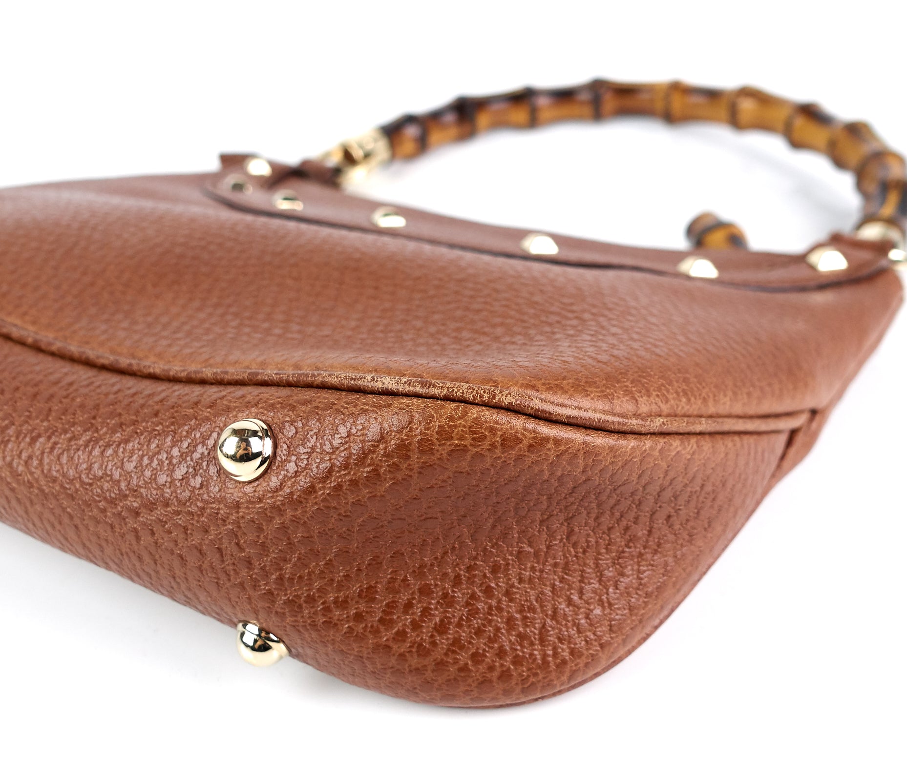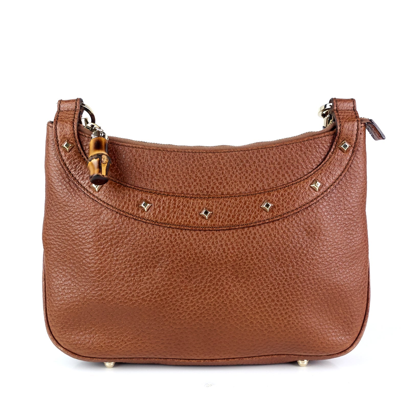 This Gucci Jackie bag is crafted from authentic pebbled leather and features a uniquely designed bamboo handle.